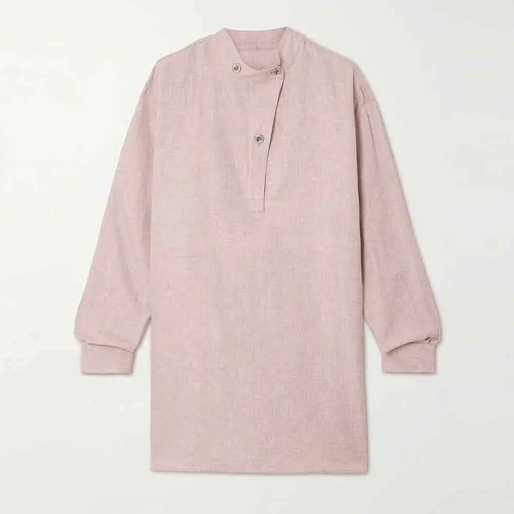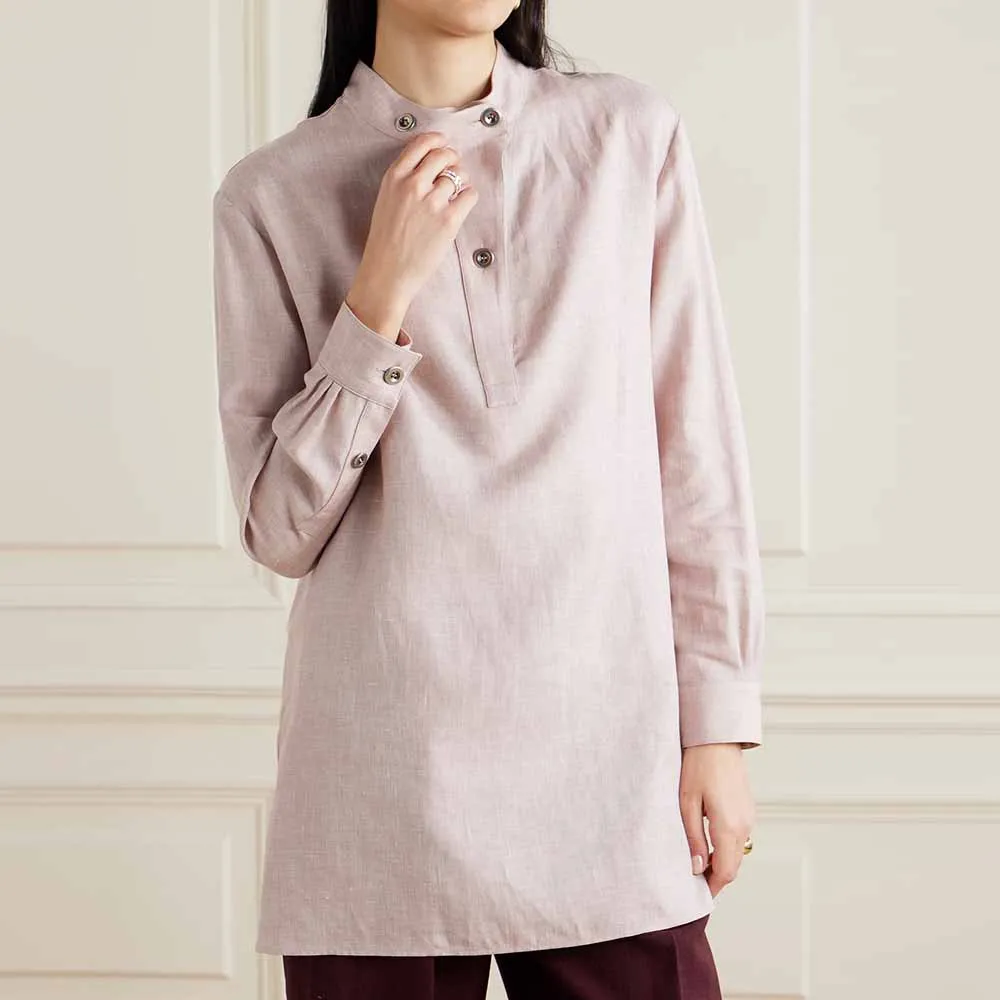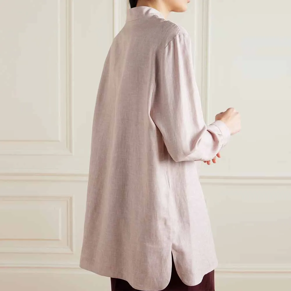 Clothing Manufacturers Custom Spring Summer Autumn Linen Stand Collar Drop Shoulder Loose Blouse Shirt