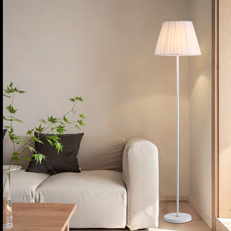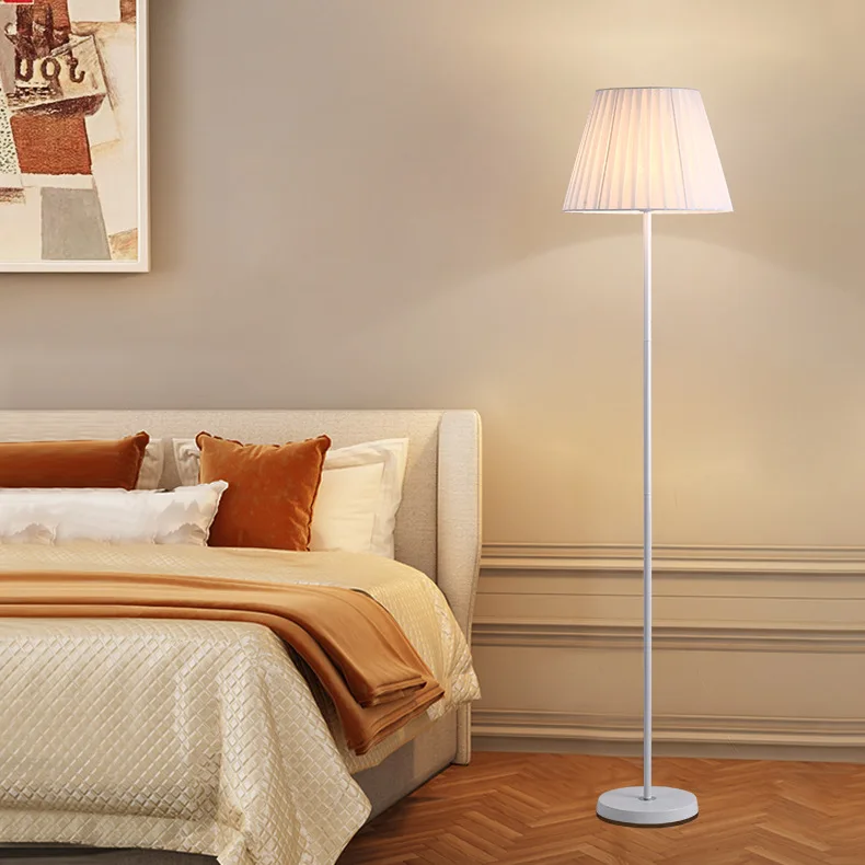 JACKSUN 110V/220V LED White Pure Cloth Cover Bedside E27 Floor Lamp 1.5 Meters Iron Stand Dimmable Sofa Hotel Decor Lights