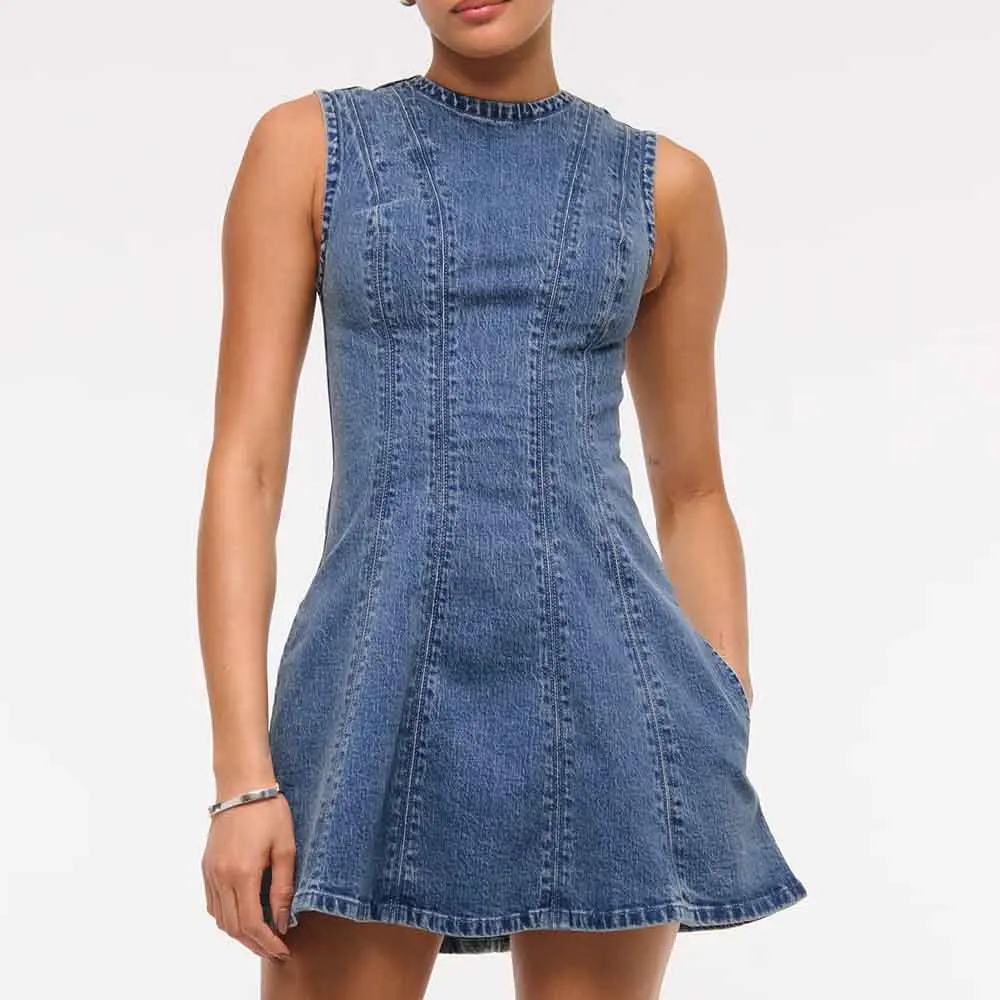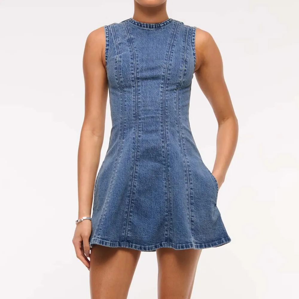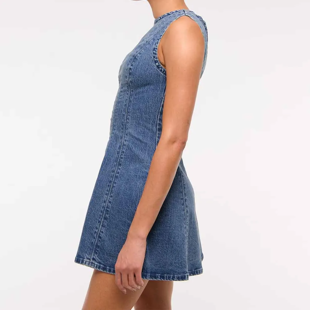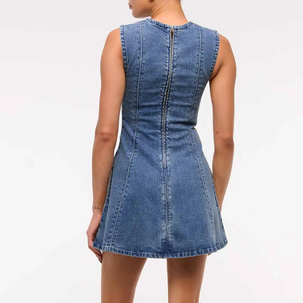 Clothing Manufacturers Custom Spring Summer Autumn Winter Casual High-Neck Denim Sleeveless A-line Mini Dress
