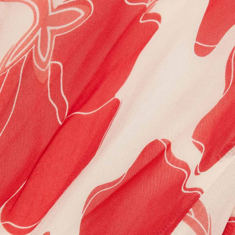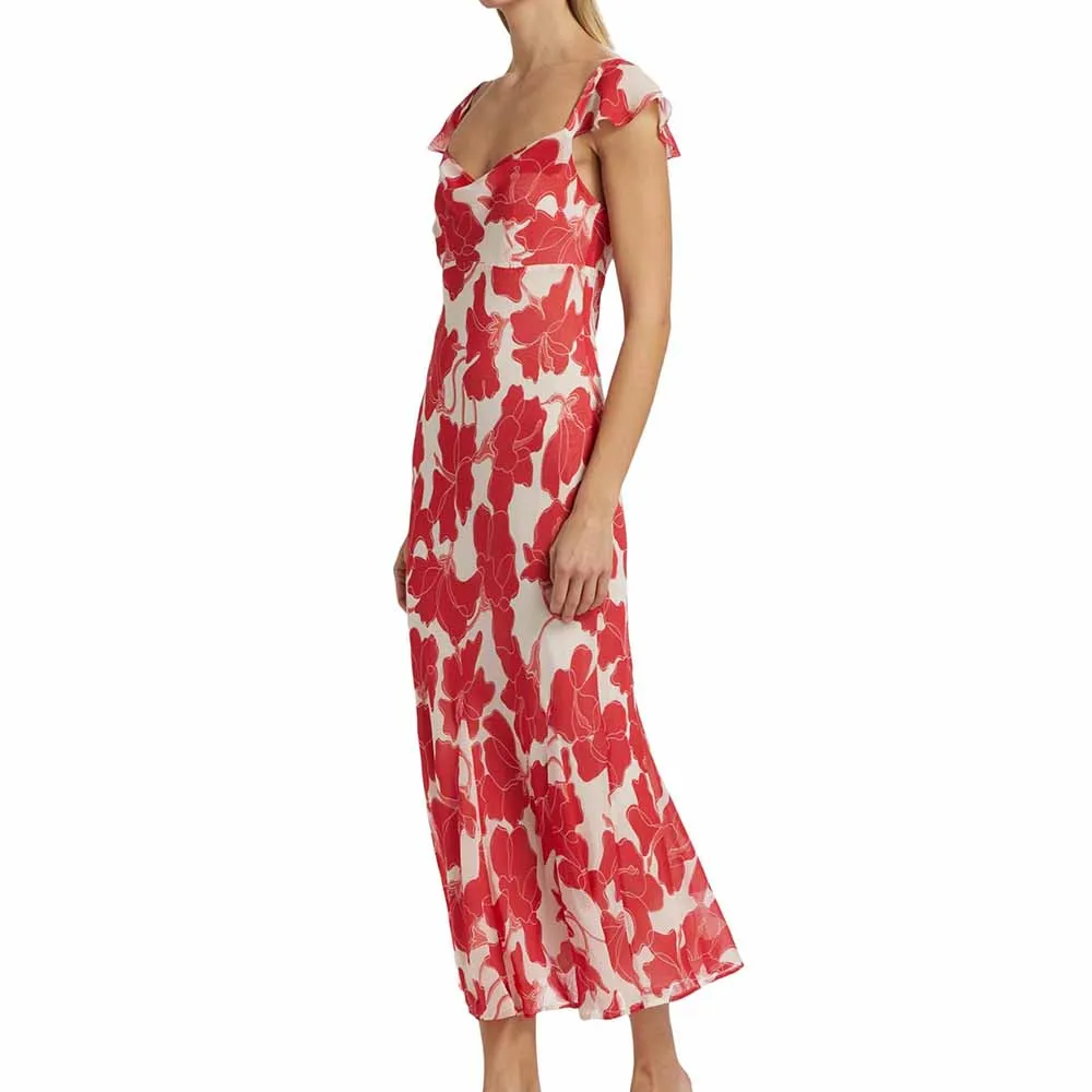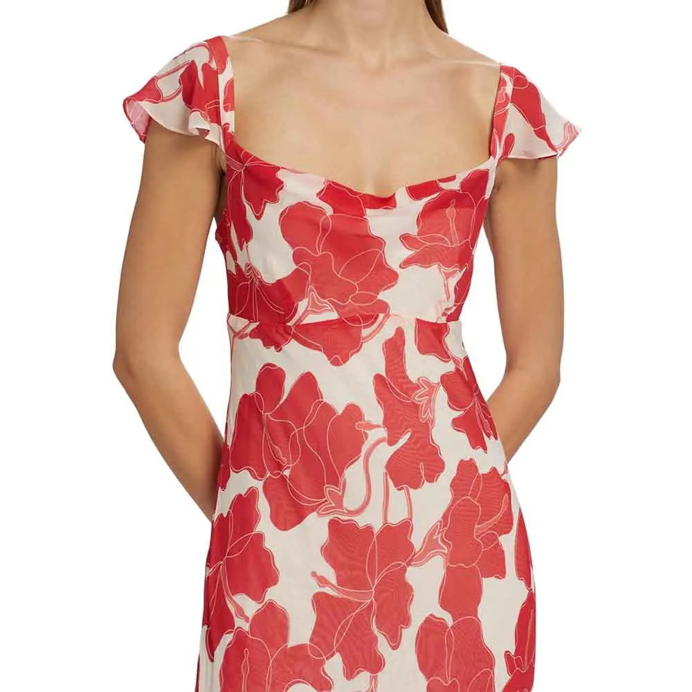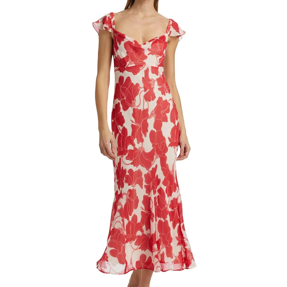 Custom High Quality Women's Summer Flower Chiffon Cow Collar Short Ruffle Sleeve Polyester Ruffle Midi Dress