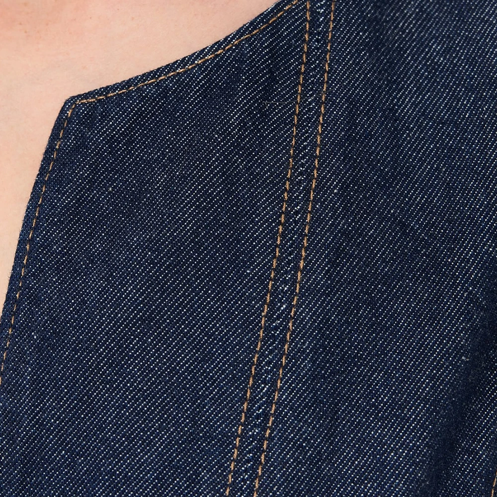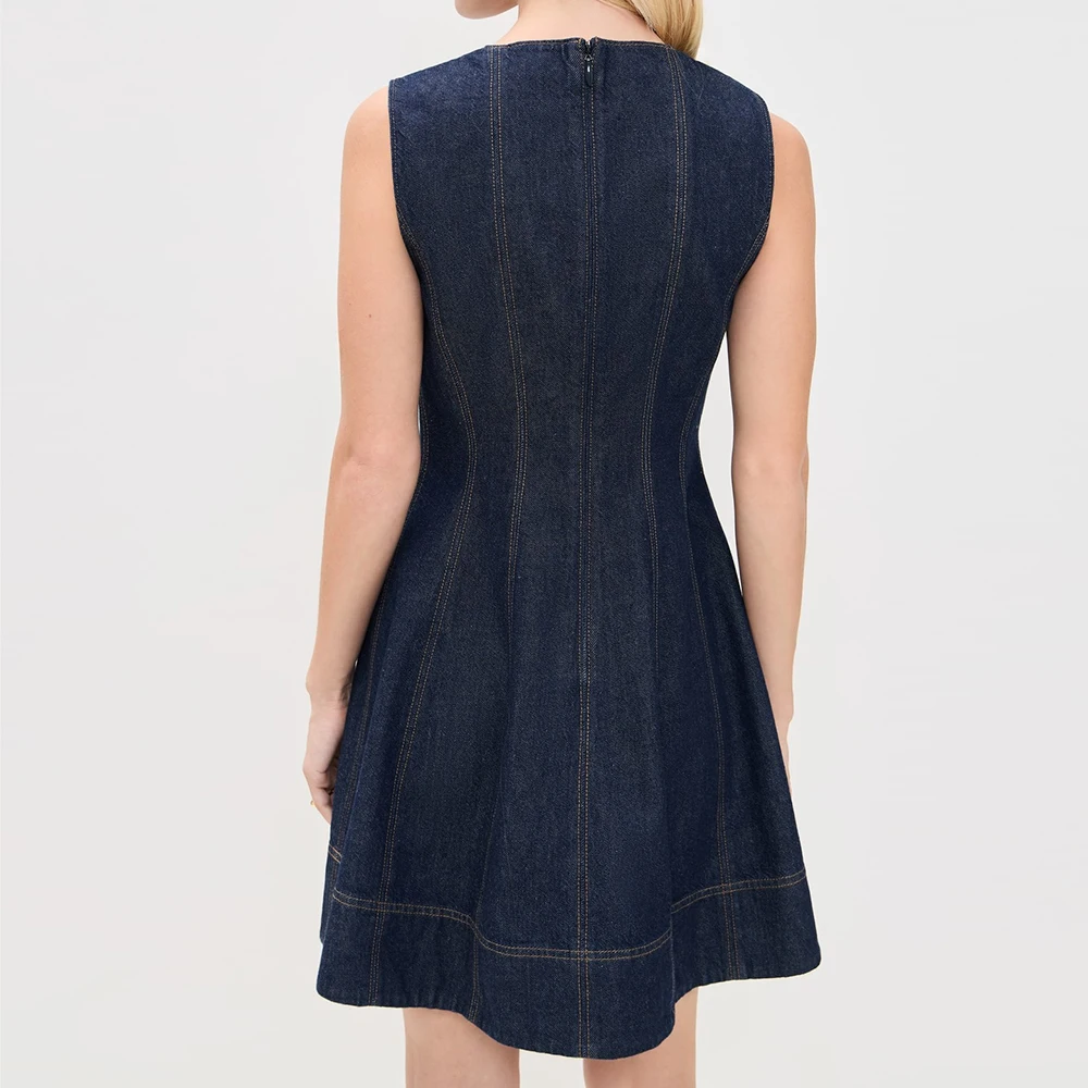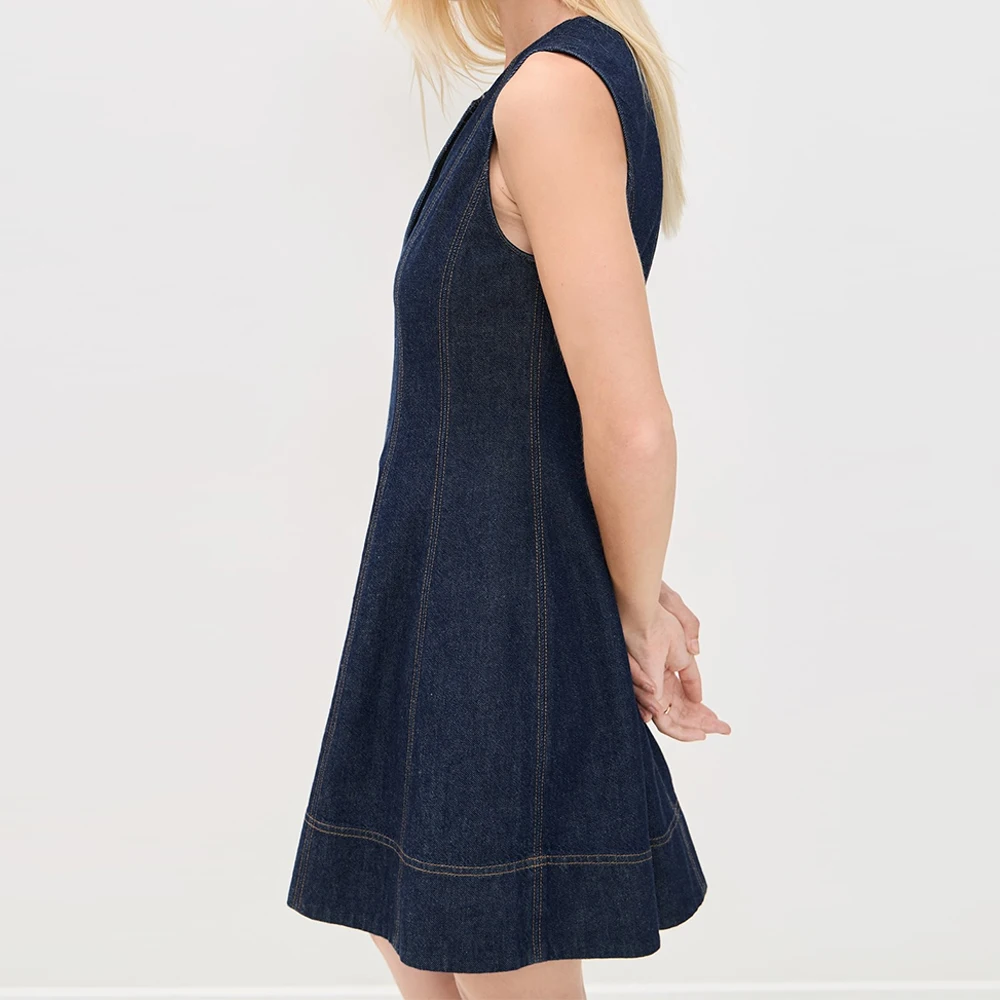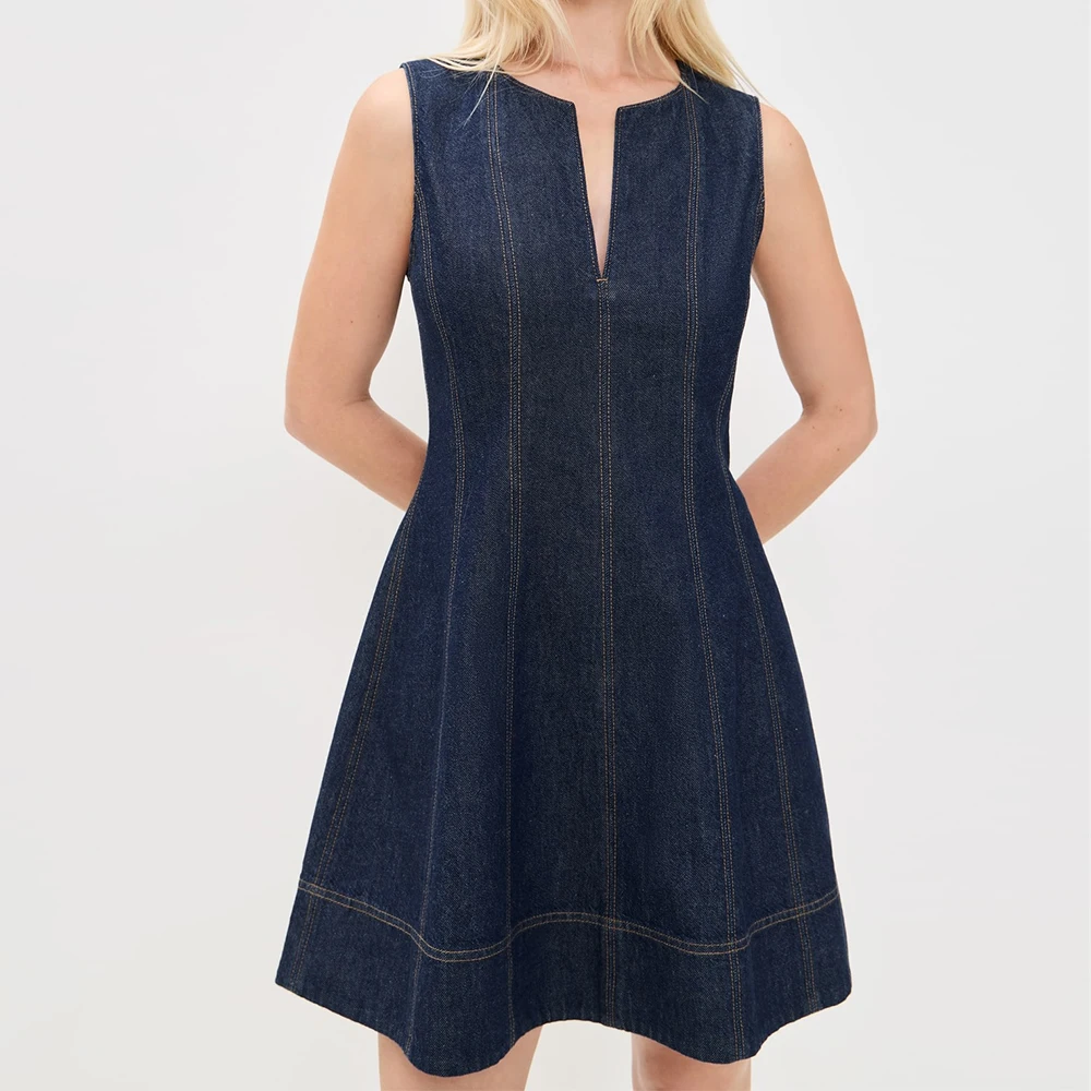 Wisrise Fashion Clothing Manufacturer Women's Dark Wash Denim V-Neck Sleeveless Fit and Flare Silhouette Mini Dress