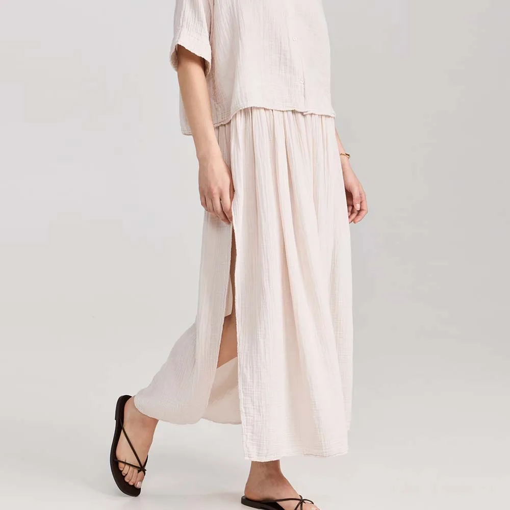 Clothing Manufacturers Custom Spring Summer Autumn Casual Elastic High Waist Ruched Linen Skirt