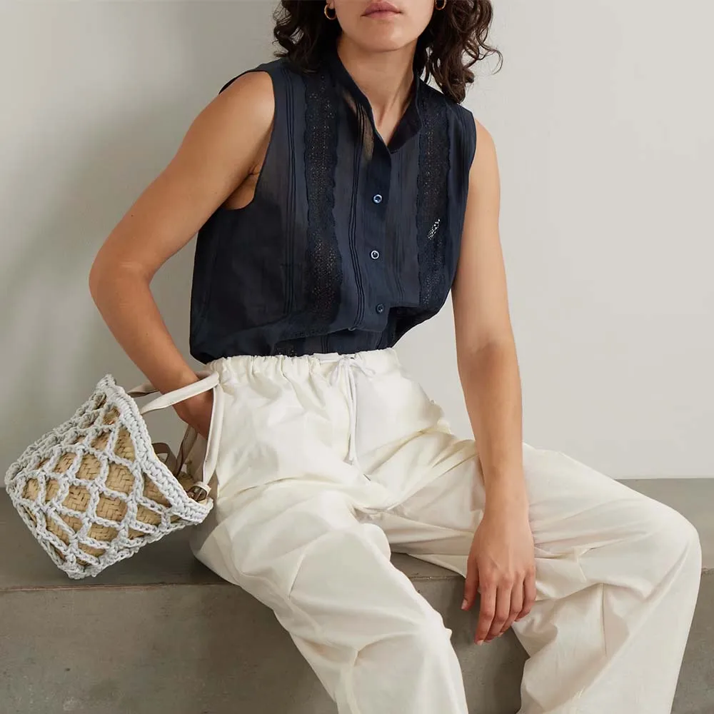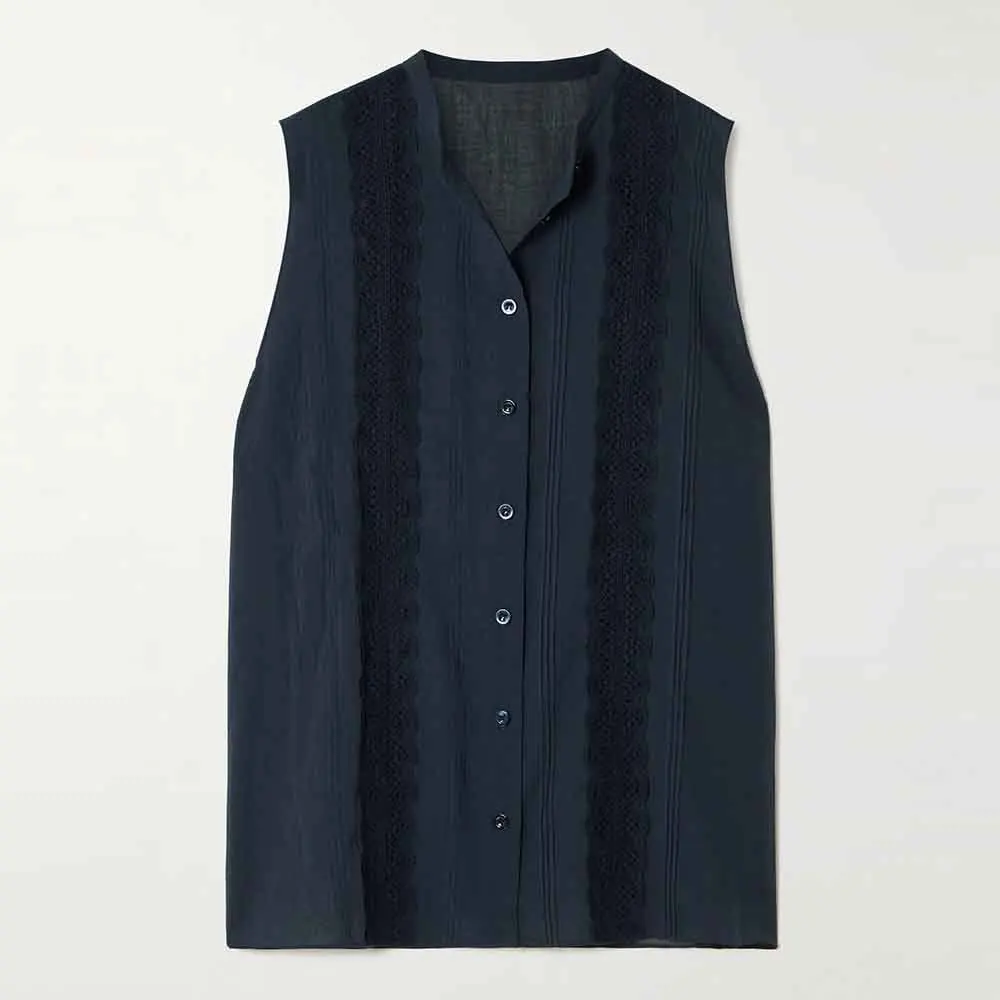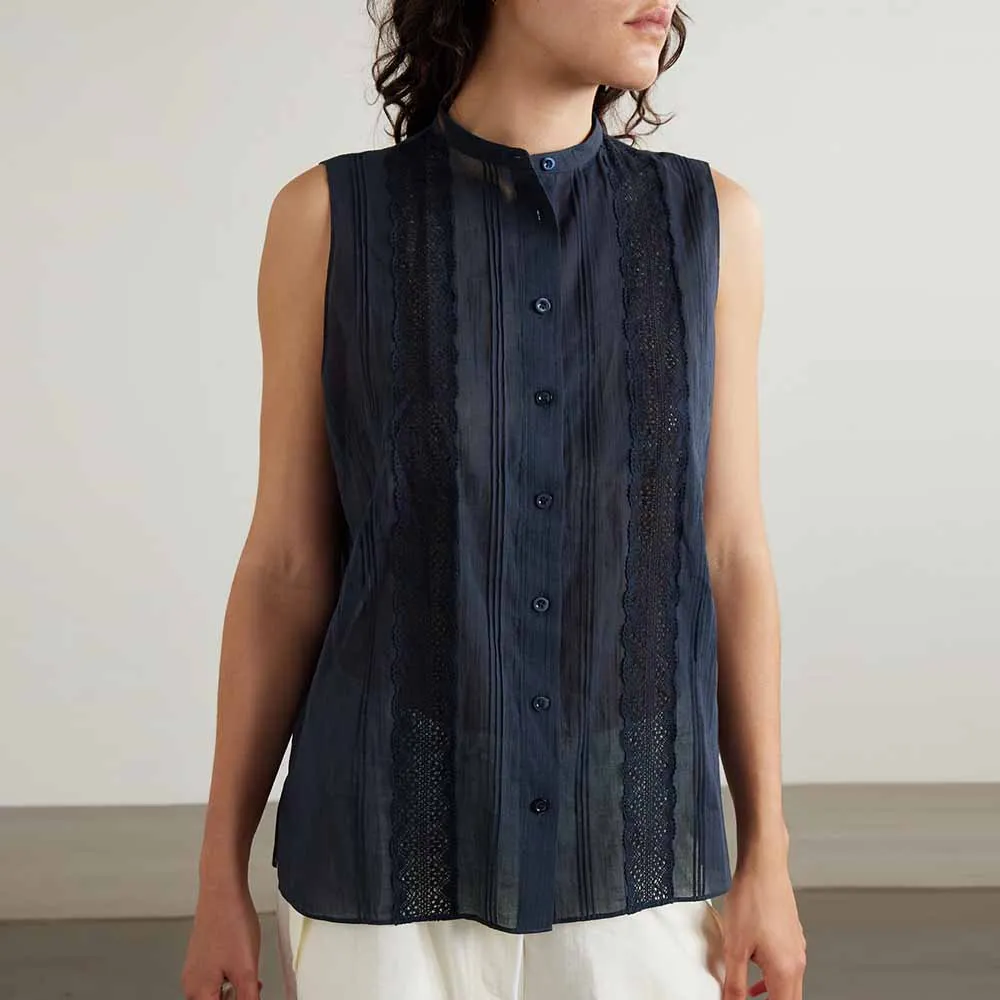 Clothing Manufacturers Custom Spring Summer Autumn v Neck Button Lace Cotton Blouse