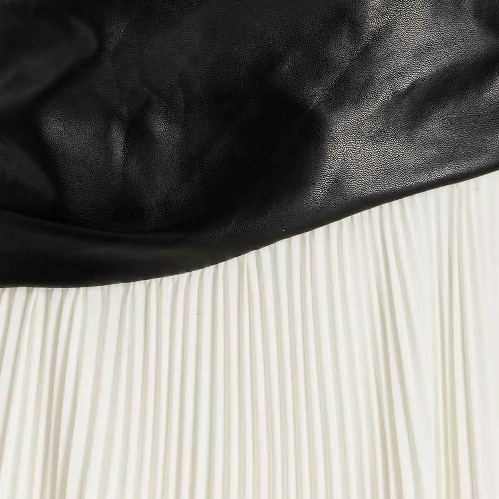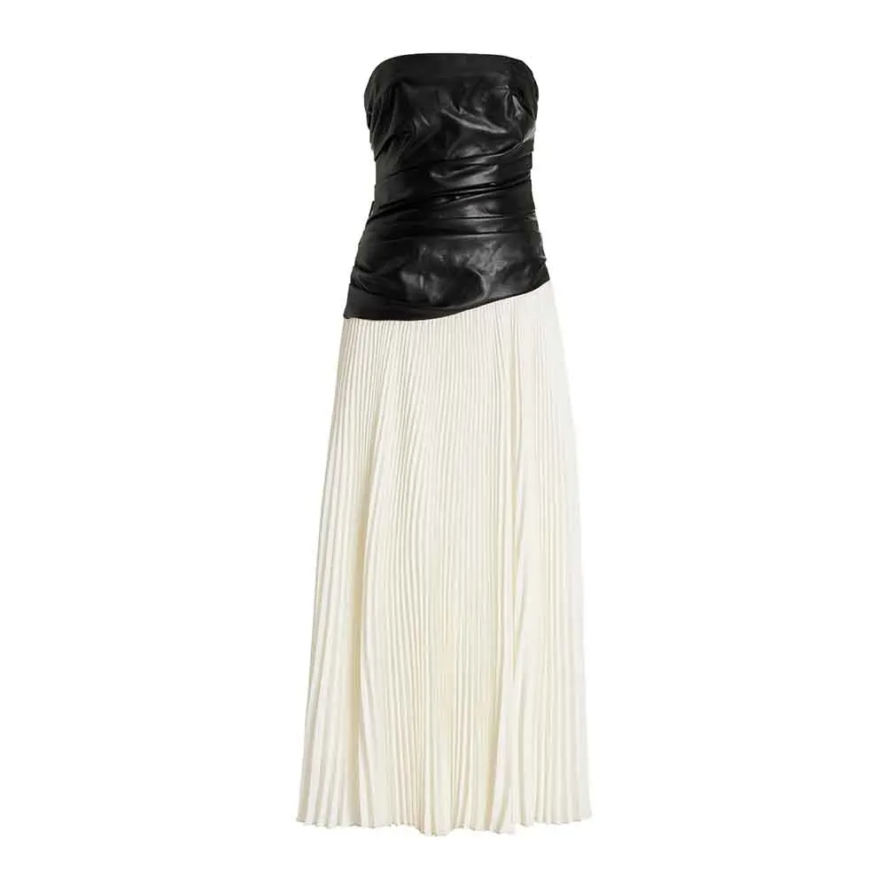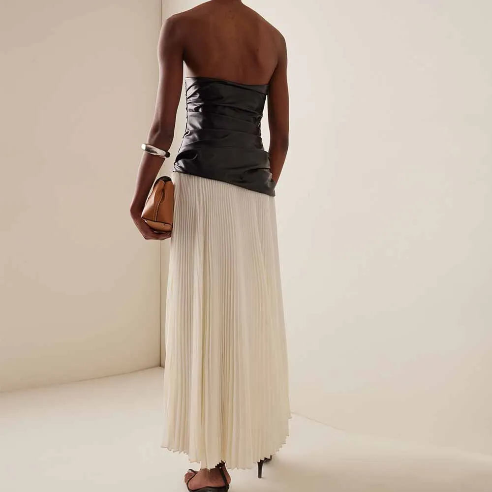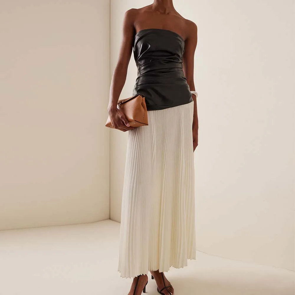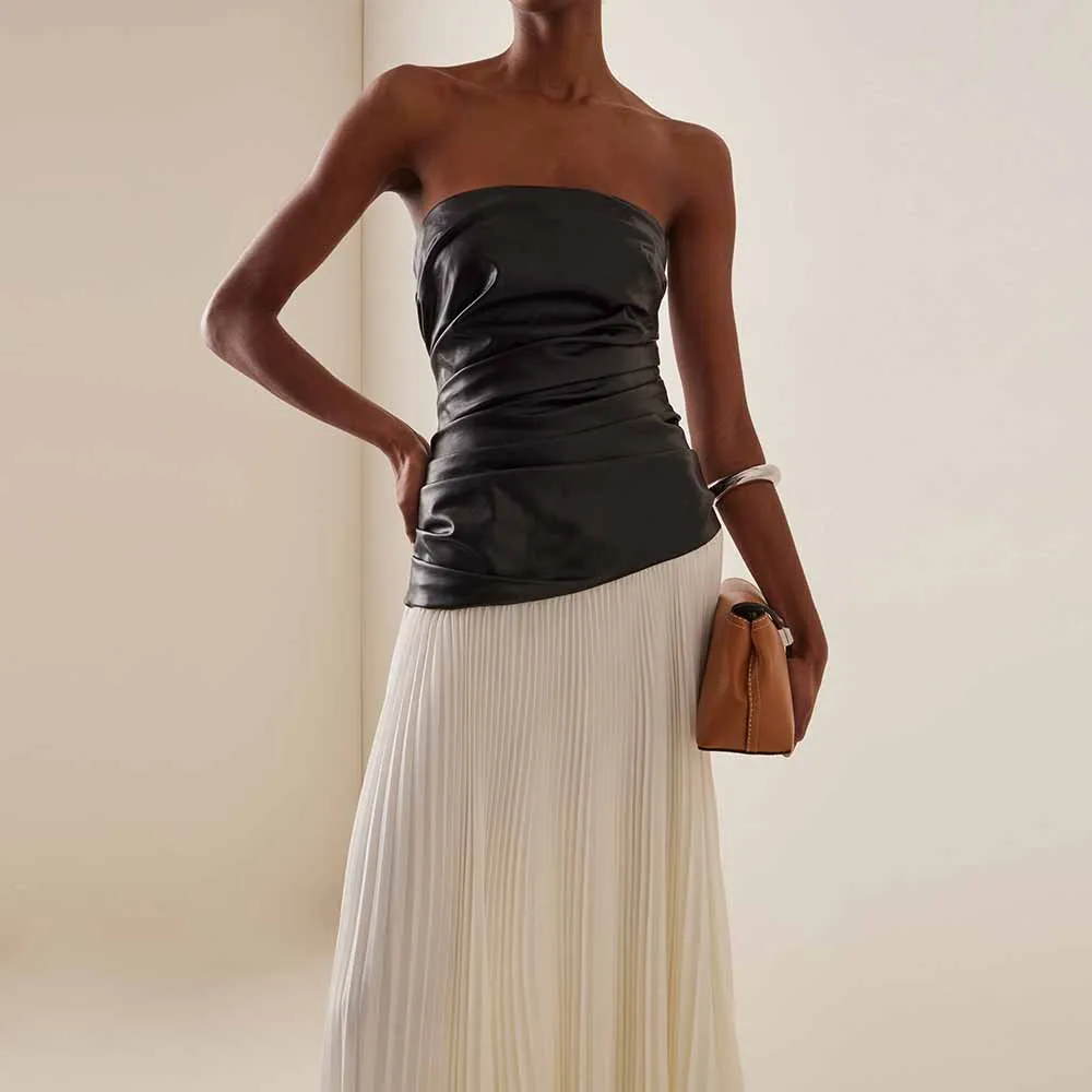 Clothing Manufacturers Custom Spring Summer Autumn Off-Shoulder Pleated Long Dress Elegant Leather Topped Maxi Dress