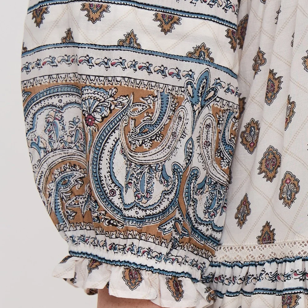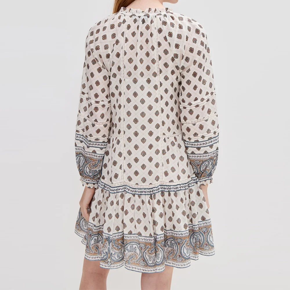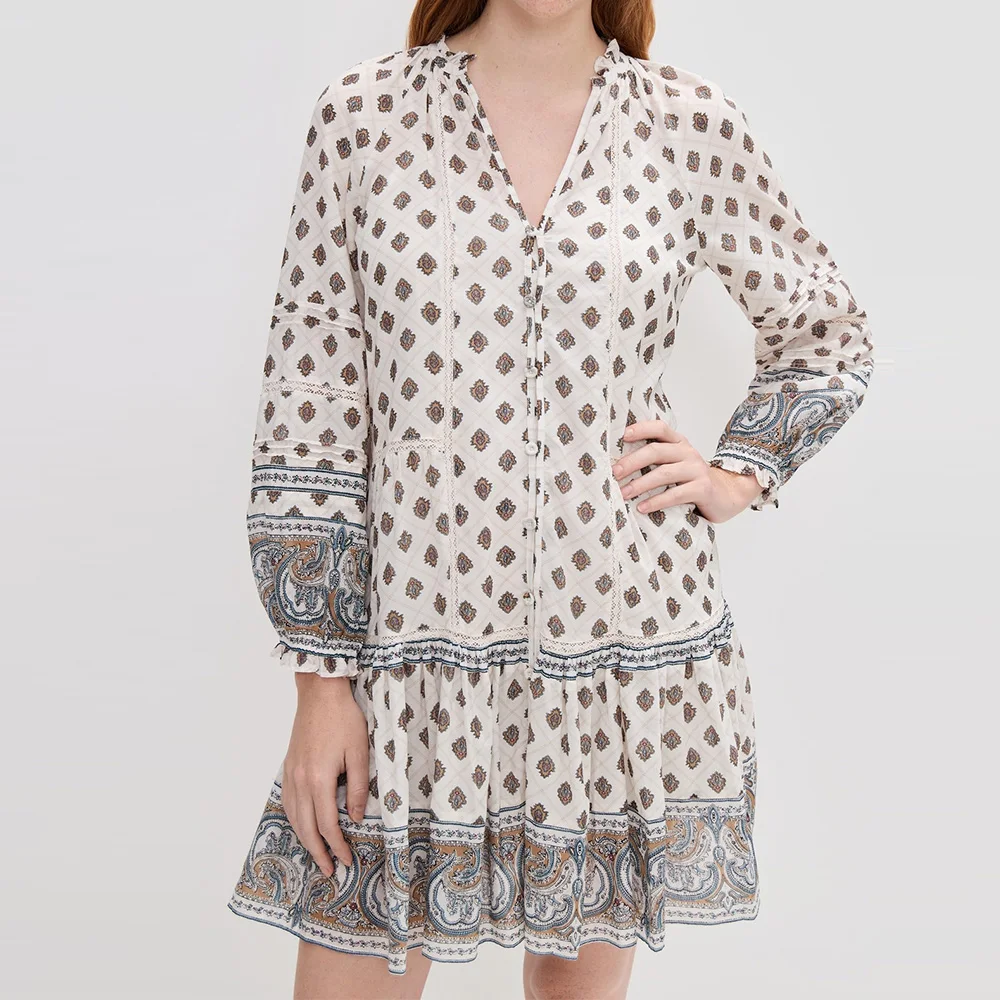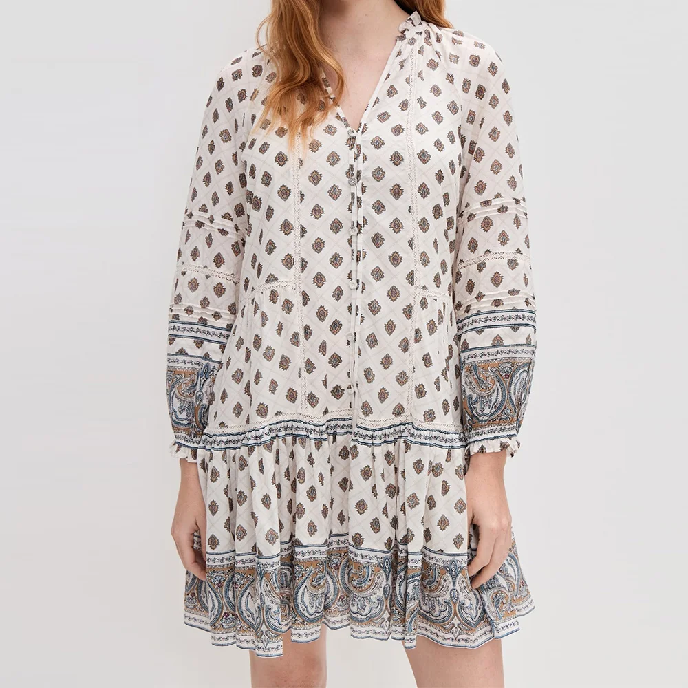 OEM Manufacturer Women's Boho Chic Printed Dress V - Neck Ruffle Hem Vacation Mini Dress