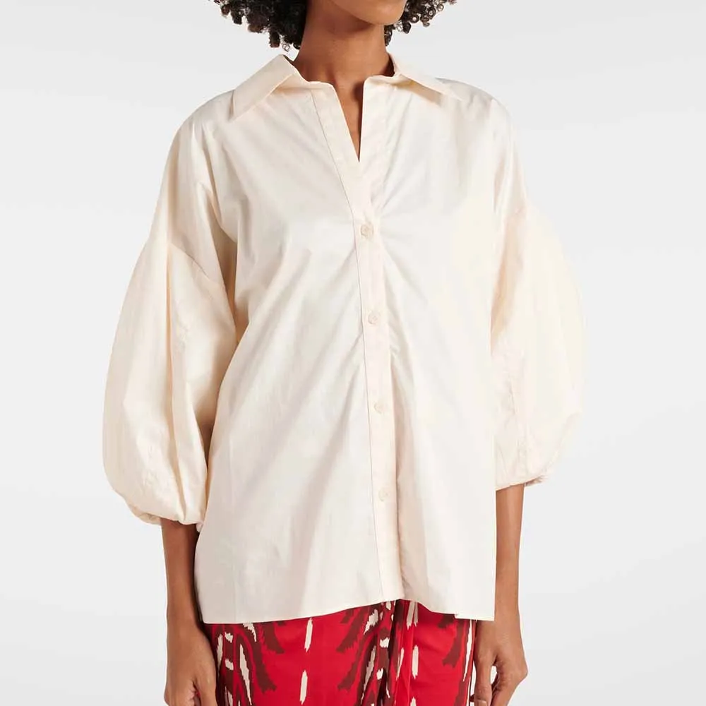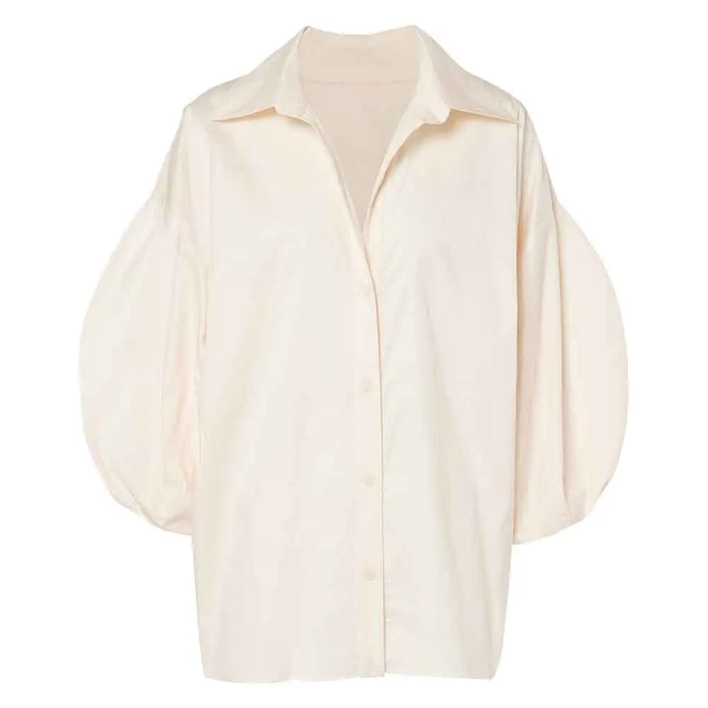 Clothing Manufacturers Custom Spring Summer Autumn Lapel Casual Casual Puff Sleeved White Shirt Poplin Blouse