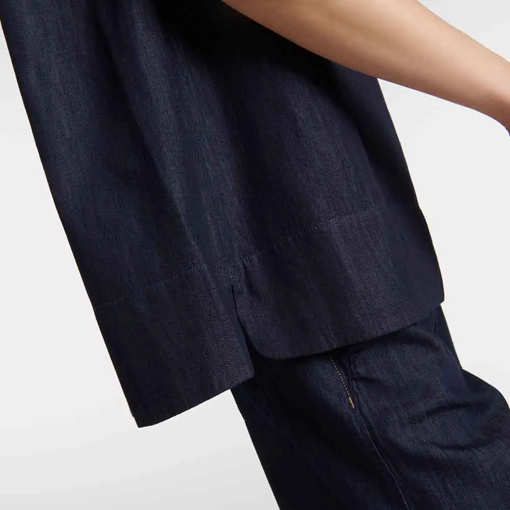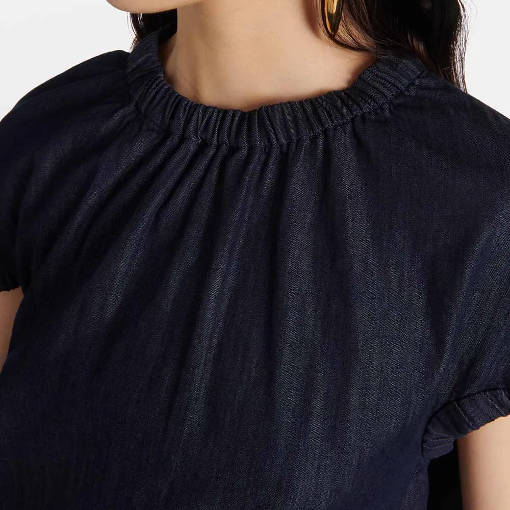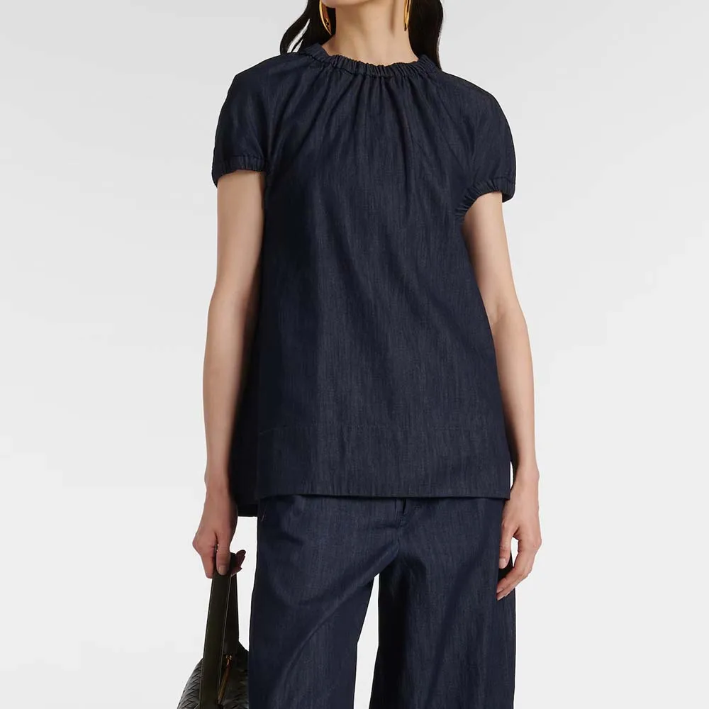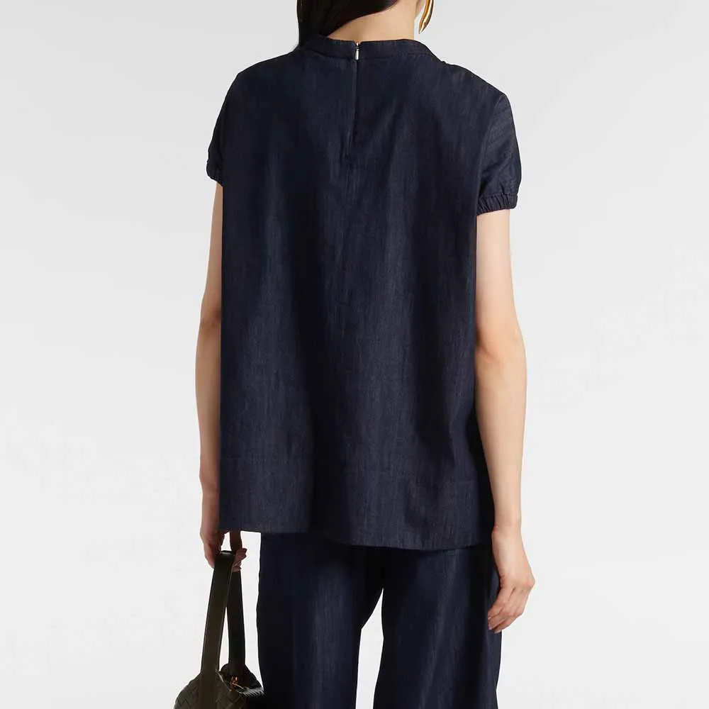 Clothing Manufacturers Custom Spring Summer Autumn High Neck Collar Short Sleeve Baiocco Denim Top