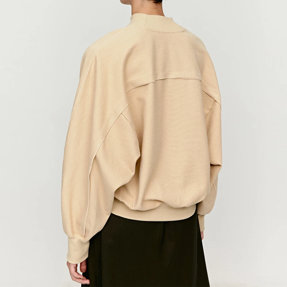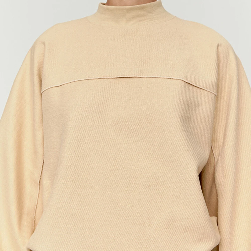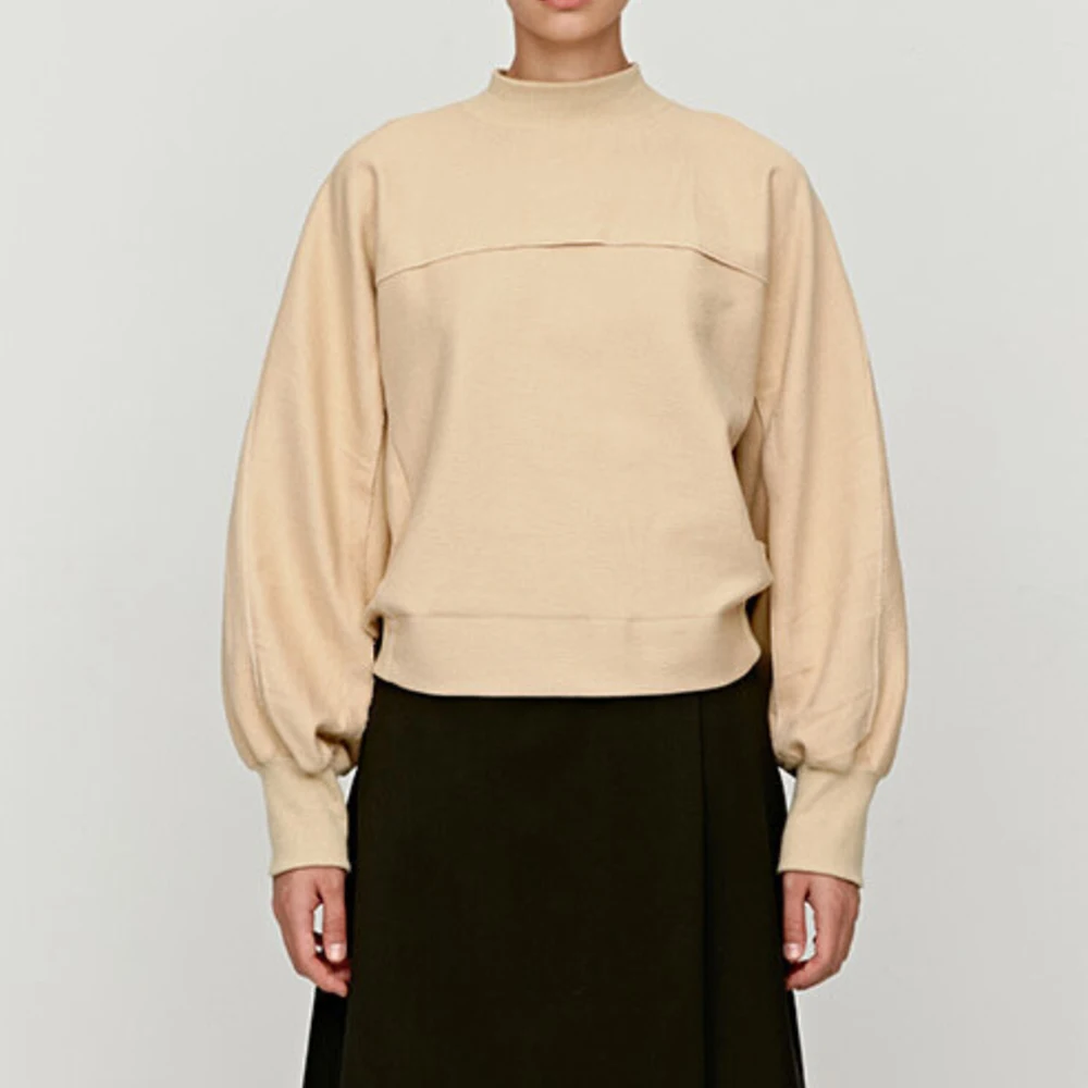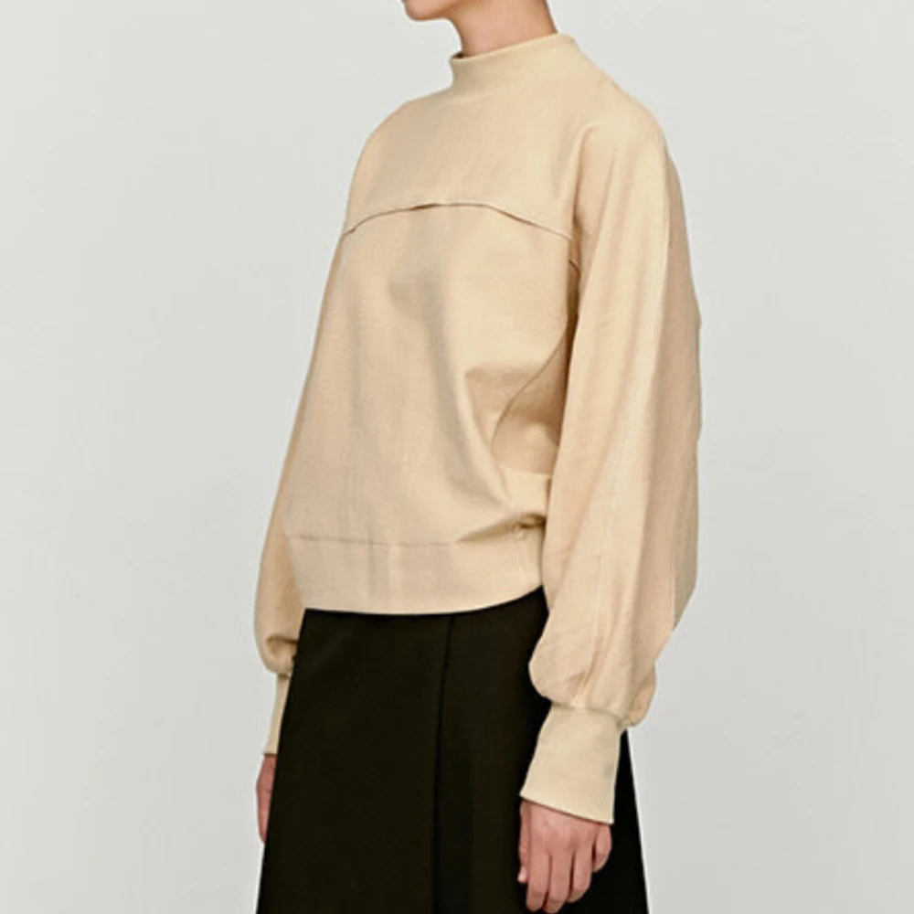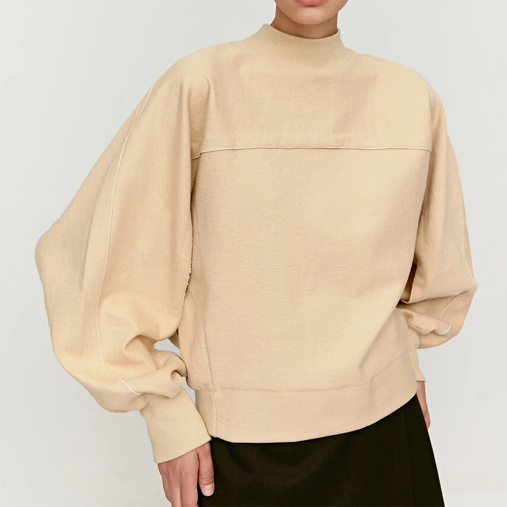 Wisrise Fashion Custom Print Minimalist Women's Beige Mock Neck Puff Sleeve Pullover Sweatshirt