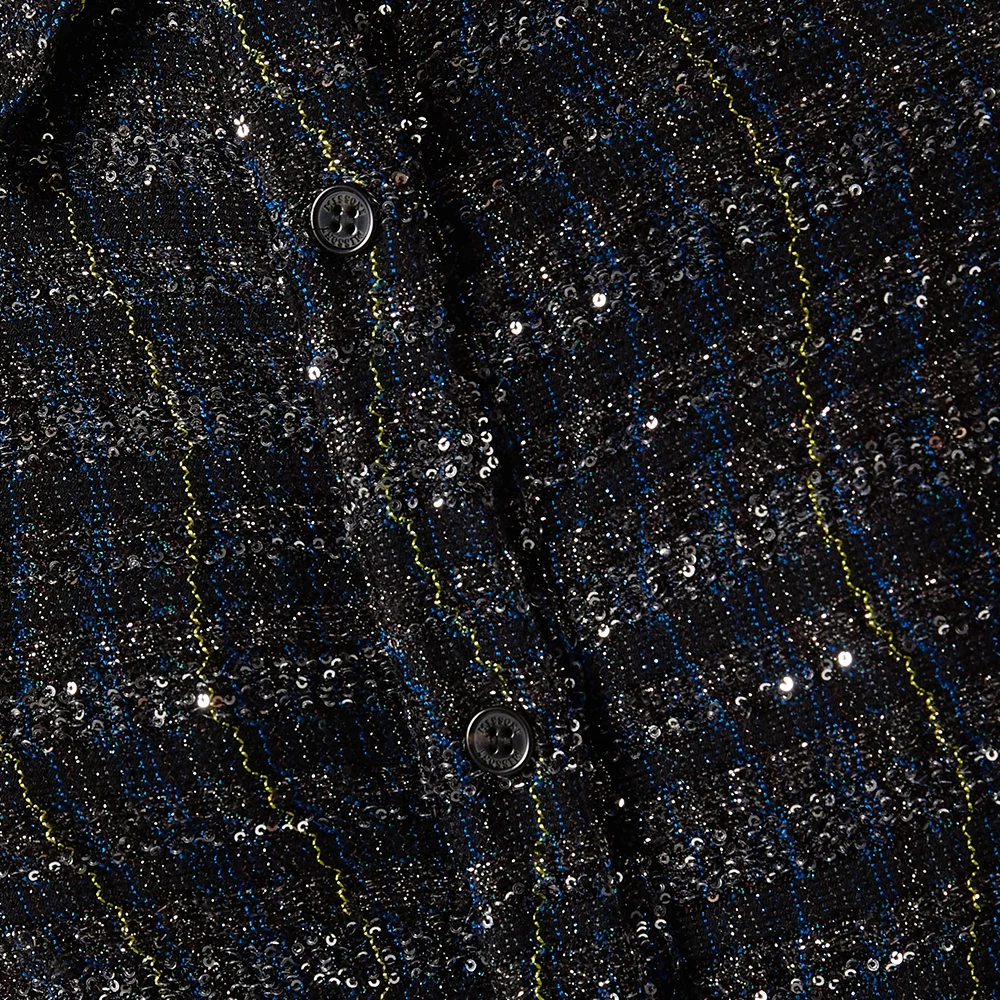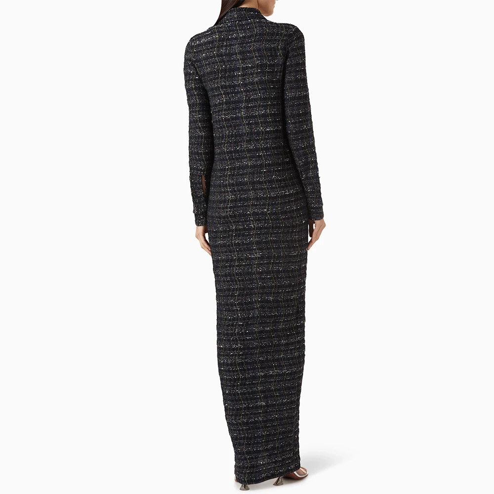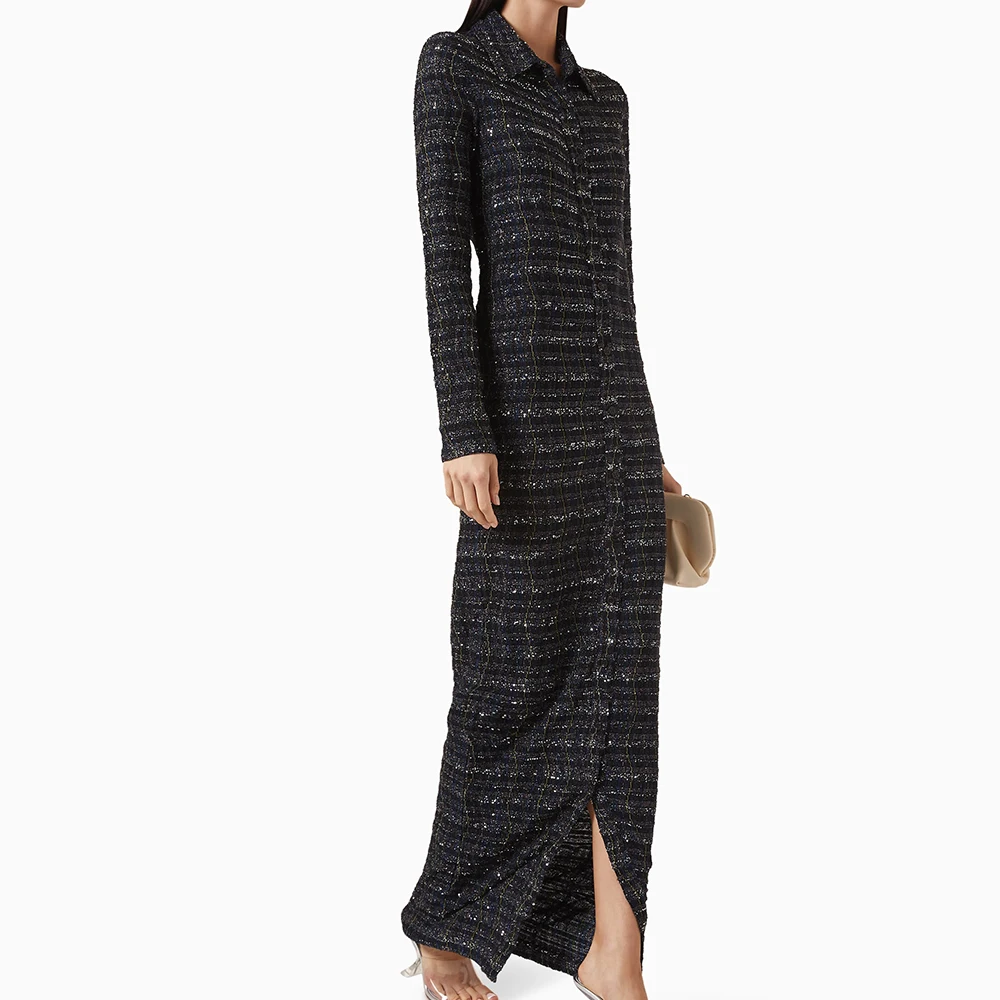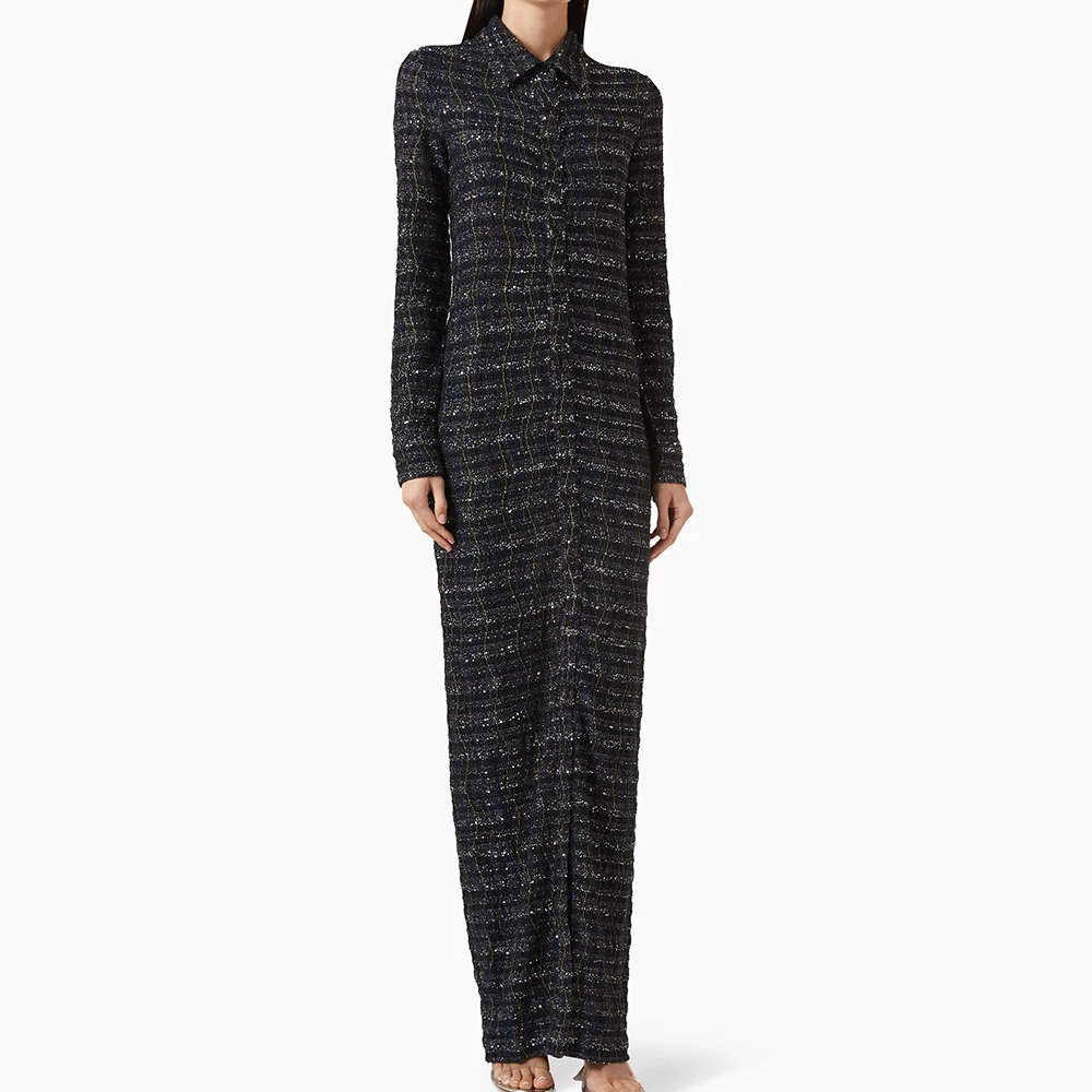 Wisrise Fashion Hot & Stylish Elegant Minimalist Style Black Button Front Tweed Maxi Shirt Dress