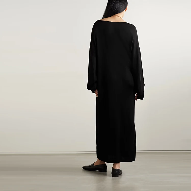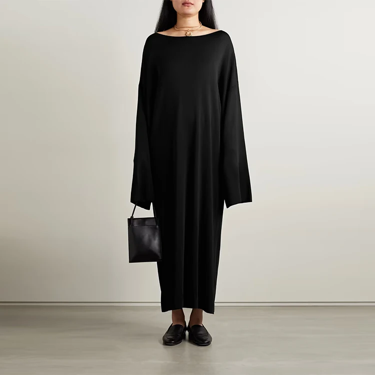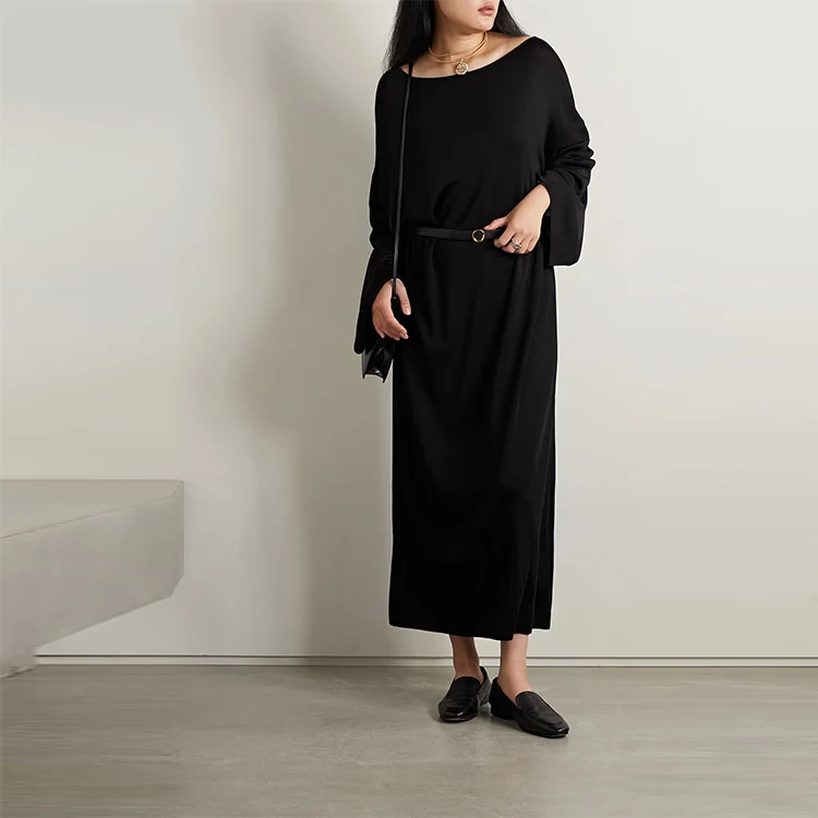 Clothing Manufacturer Custom Autumn Winter Black Crew Collar Long Sleeves Elegant Casual Women Plus Size Dresses