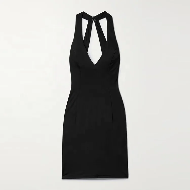 Clothing Manufacturer Spring Summer Custom Black V Neck Sleeveless Elegant Casual Women Mini Backless Dress