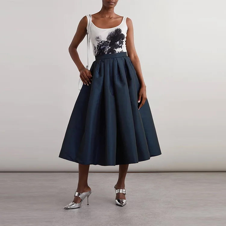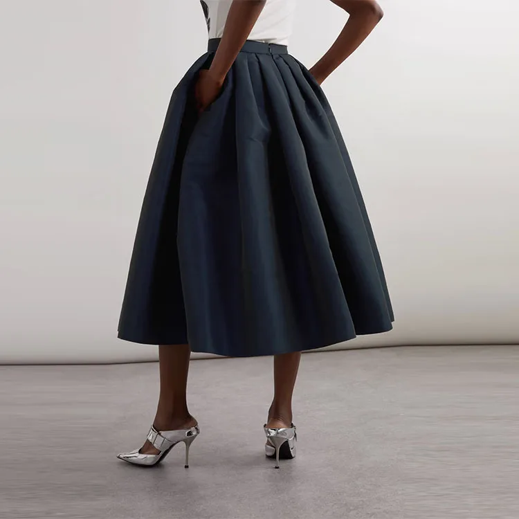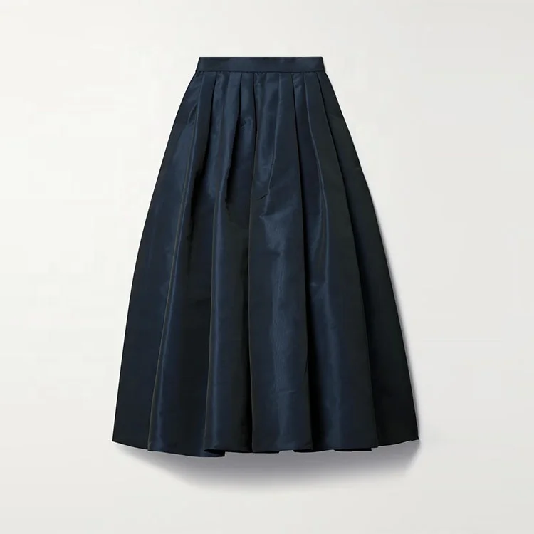 Clothing Manufacturer Custom Spring Summer High Waist Women Elegant Casual Pleated Faille Midi Skirt