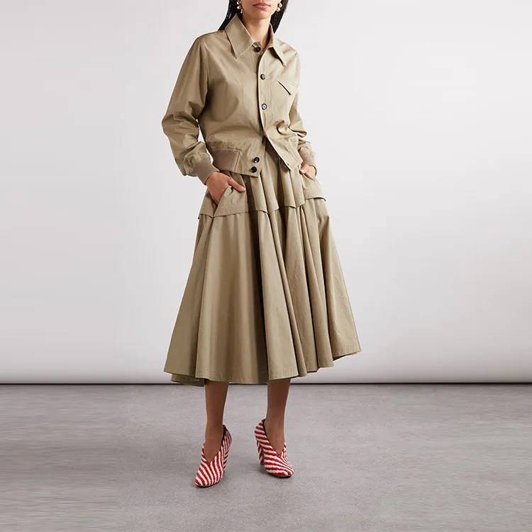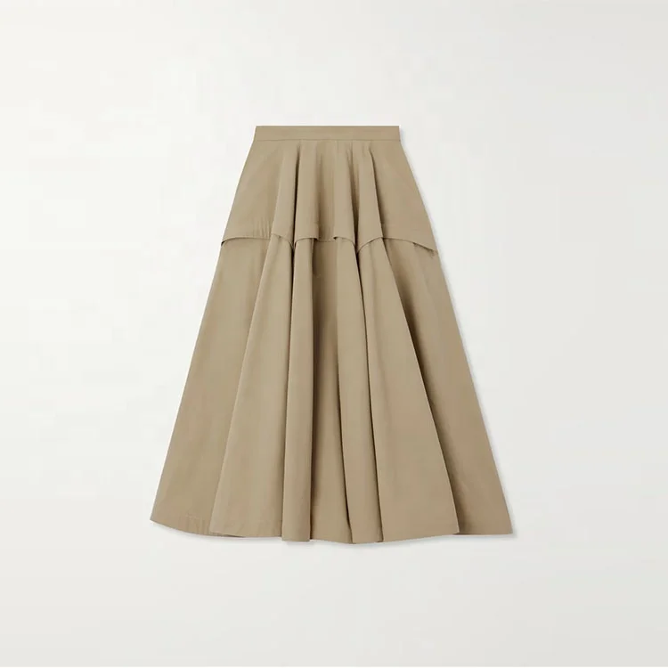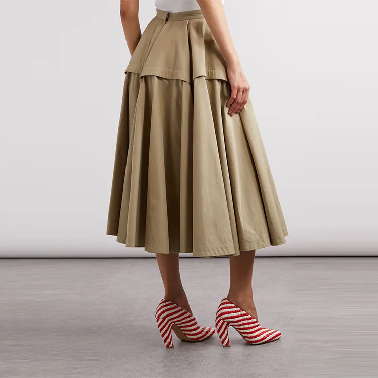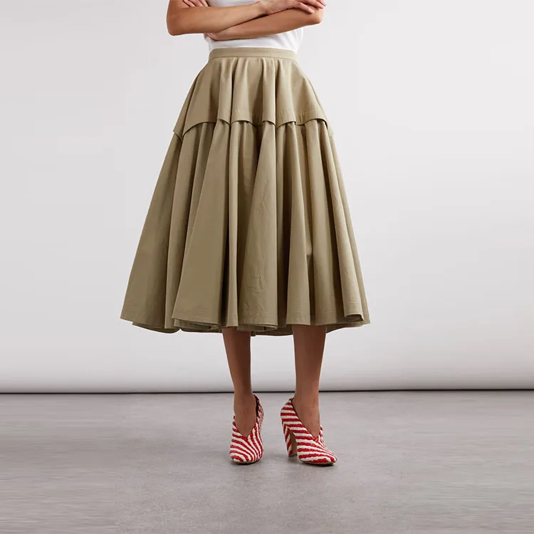 Clothing Manufacturer Custom Spring Summer High Waist Elegant Casual Pleated Cotton Women Midi Skirt