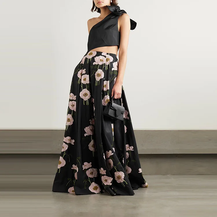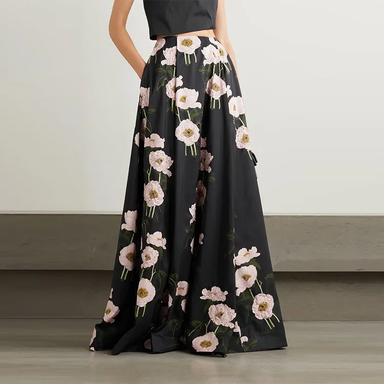 Clothing Manufacturer Custom Spring Summer Black High Waist Elegant Casual Fashion Print Women Skirts 2023