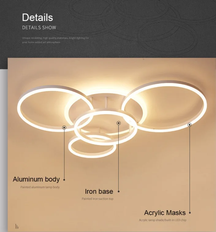JACKSUN LED Circle Rings Ceiling Light Circle Acrylic Aluminum Gold Ceiling Lamp for Bedroom Study Hotel Lighting
