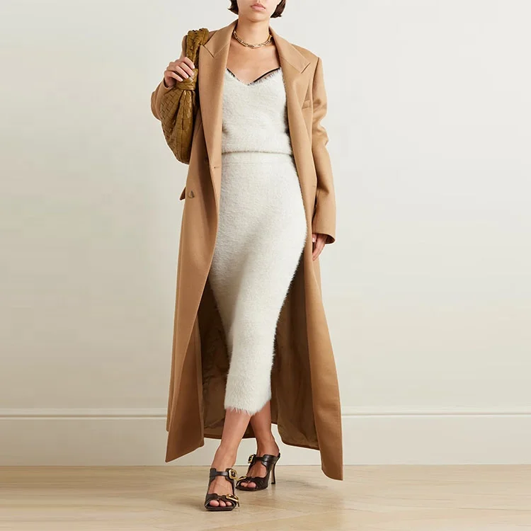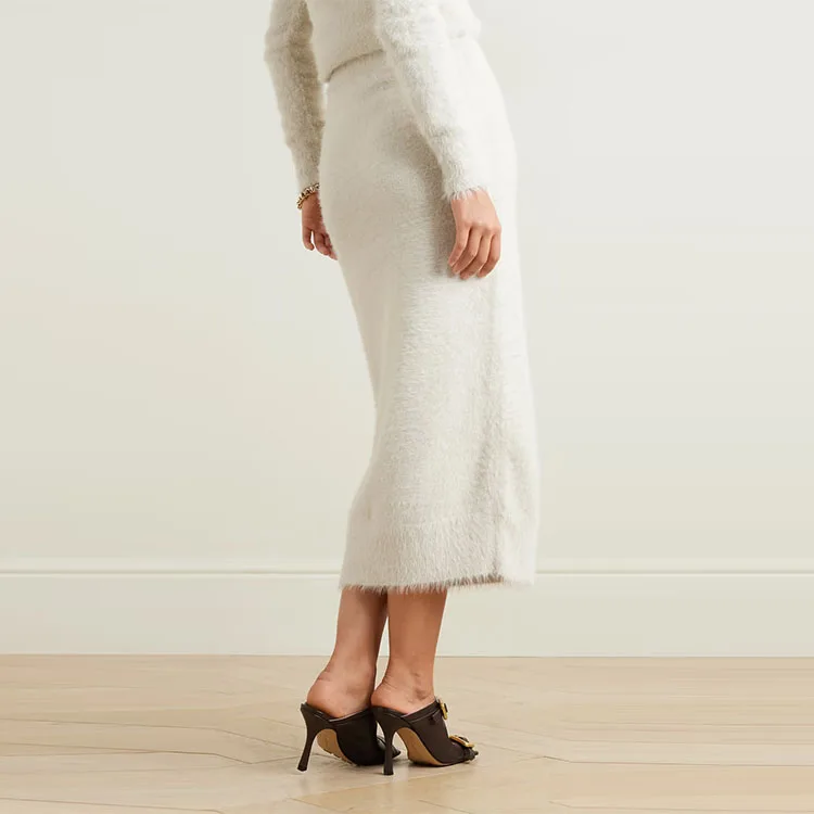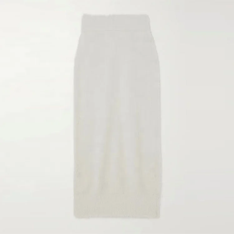 Clothing Manufacturer Custom Autumn Winter White Color High Waist Stretch Elegant Casual Knitted Midi Skirt