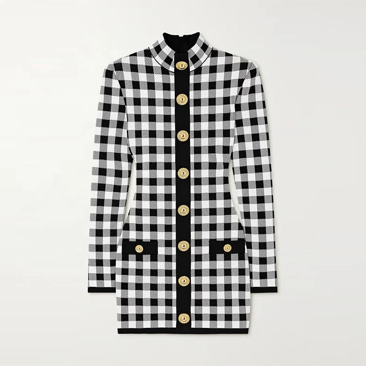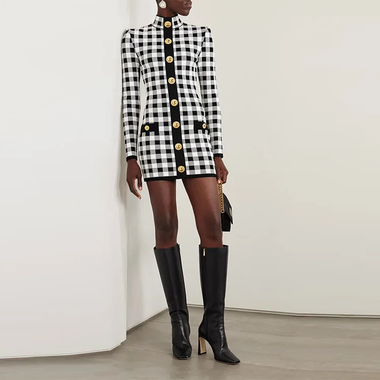 Knitwear Manufacturer Custom Spring Autumn Crew Neck Long Sleeve Elegant Casual Jacquard Knit Woman Sweater Mini Dress