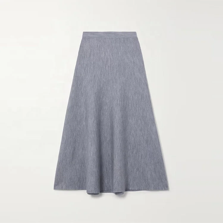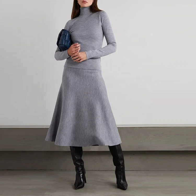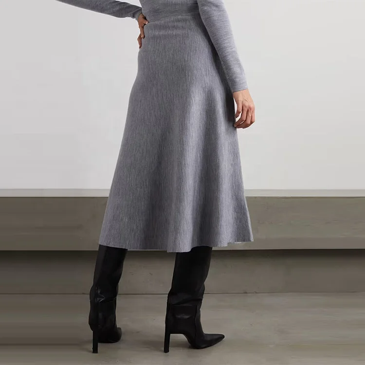 Clothing Manufacturer Custom Spring Autumn Gray High Waisted Stretch Elegant Casual Women Wool Cashmere Midi Skirt