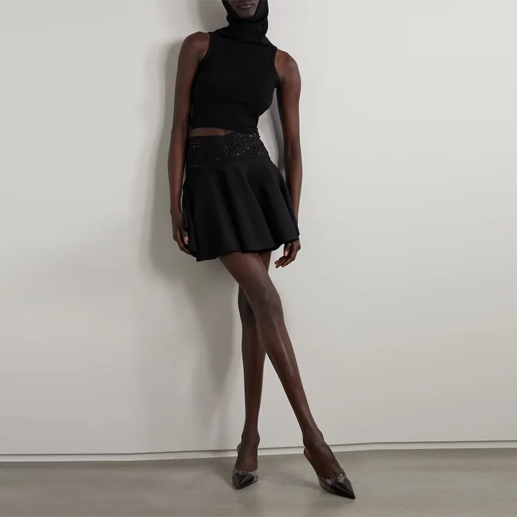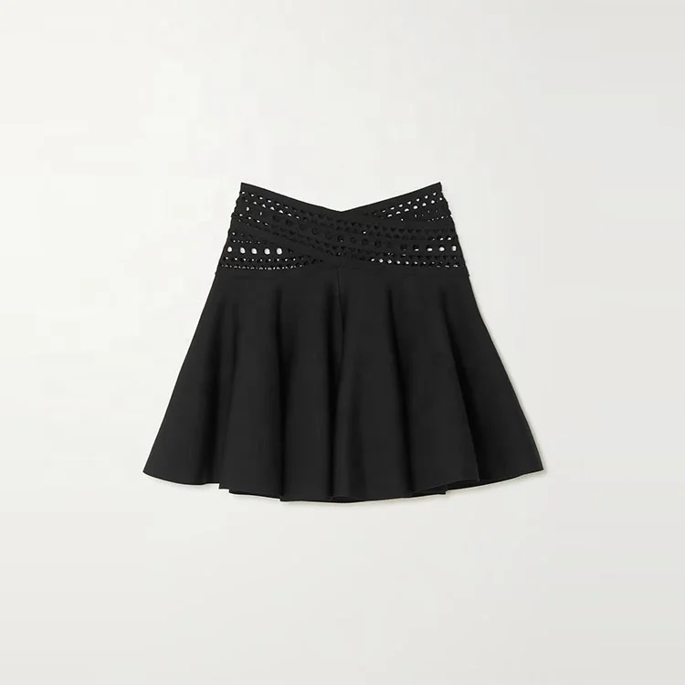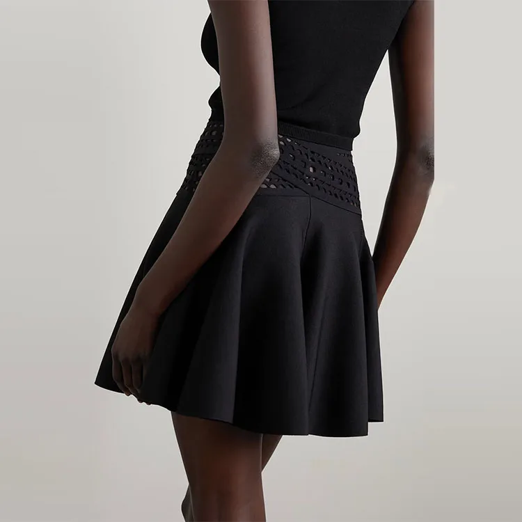 Clothing Manufacturer Custom Spring Summer Black High Waist Stretch Elegant Casual Women Knit Mini Skirt