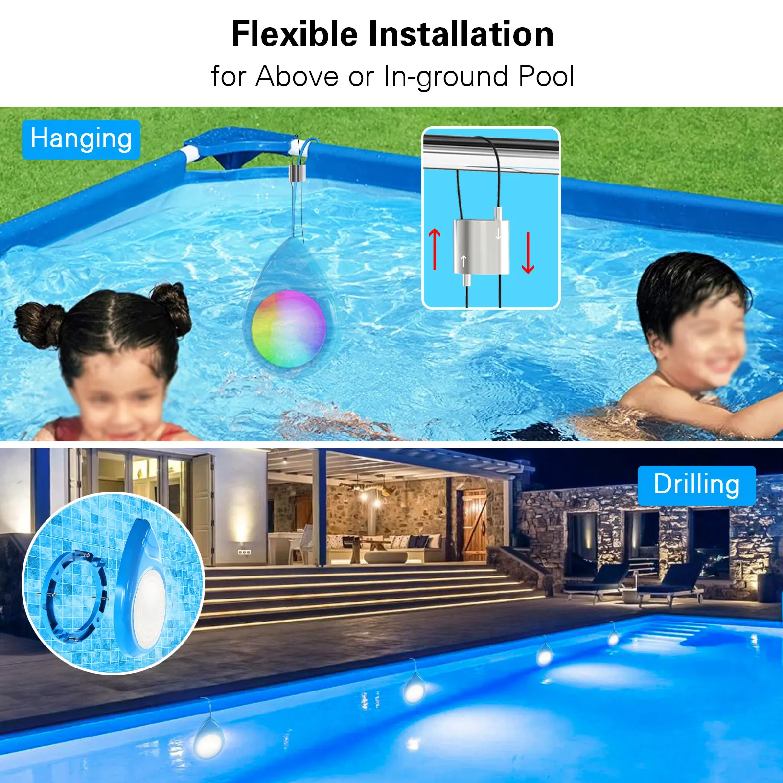 High Quality ABS PC Transparent Cover Waterproof IP68 Swimming Pool Light Water Drop Pool Light With American Standard