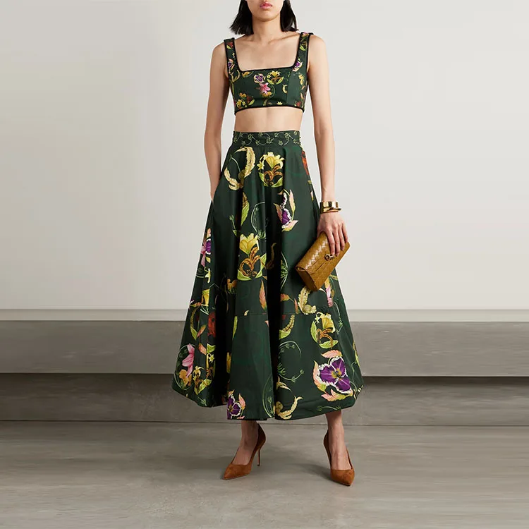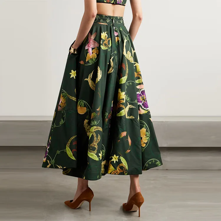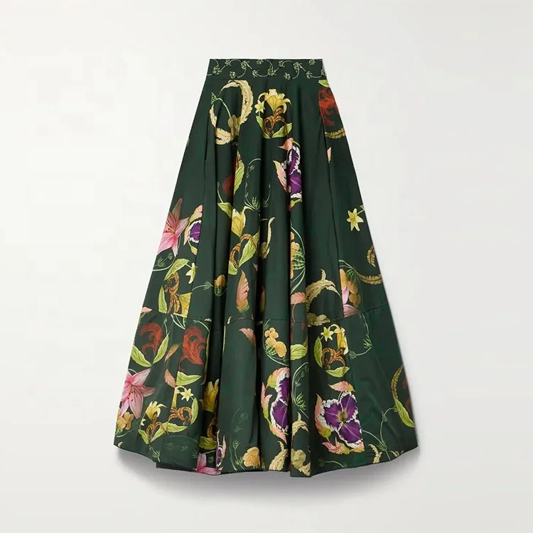 Clothing Manufacturer Custom Spring Autumn High Waist Floral Print Cotton Women Elegant Casual Midi Skirt