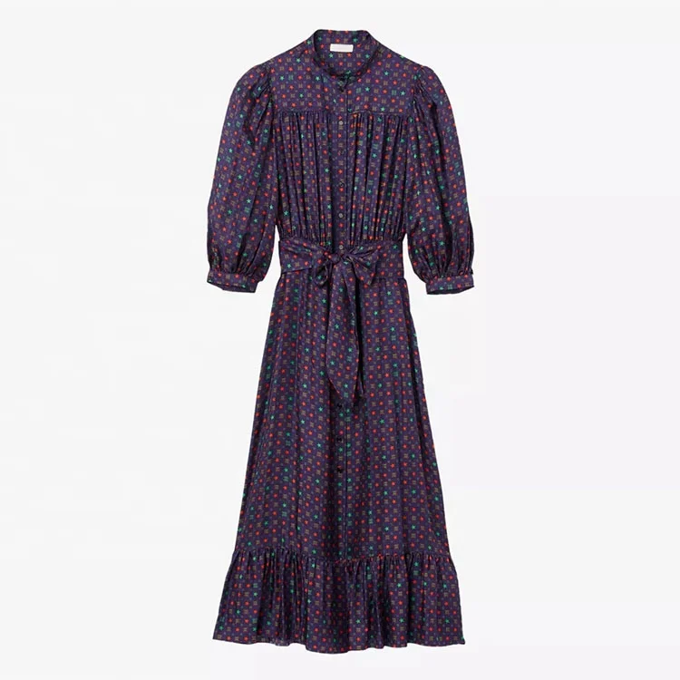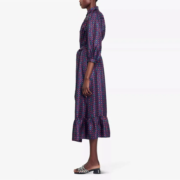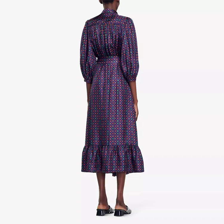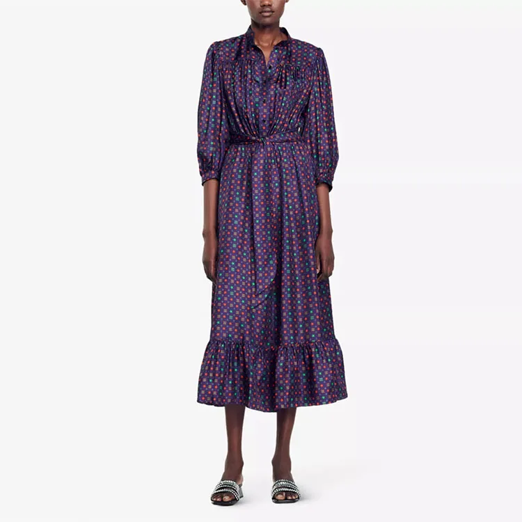 Clothing Manufacturer Custom Spring Autumn Crew Collar Long Sleeve Tunic Elegant Casual Women Midi Dress