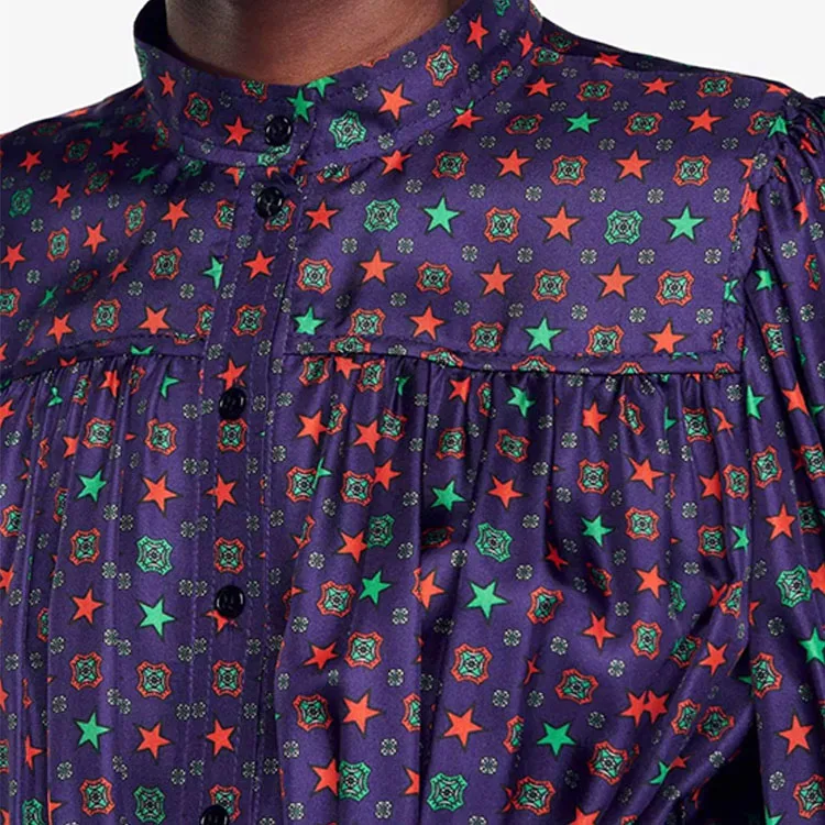 ZYHT 73963 Matte Satin Printed Geometric Pattern Maxi Women Asymmetric One Shoulder Ruched Hem Women Dress