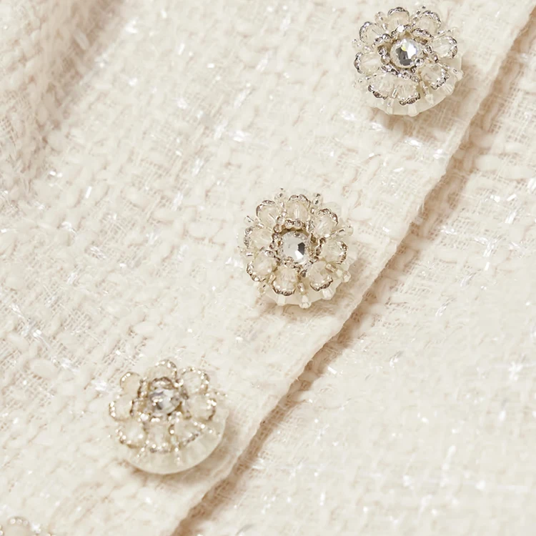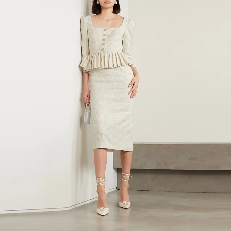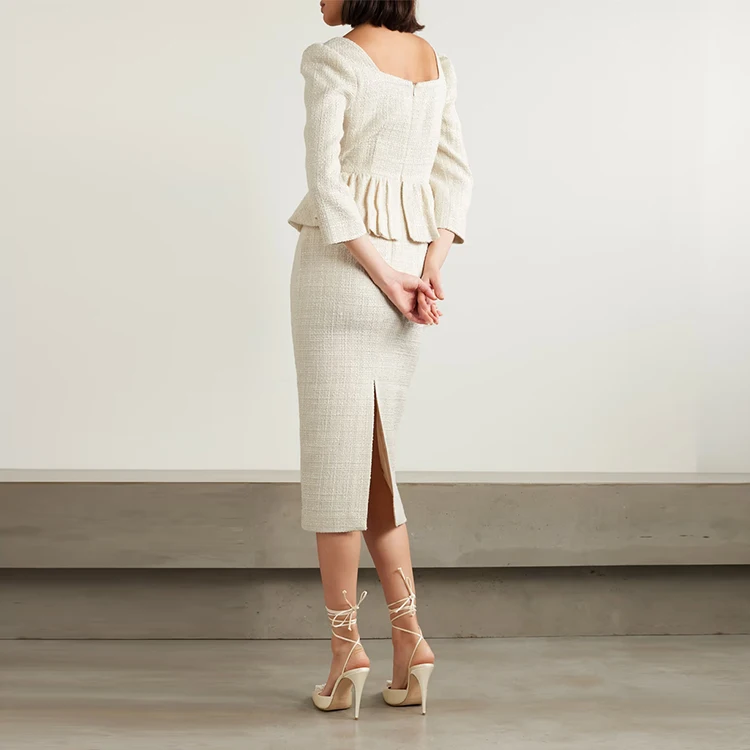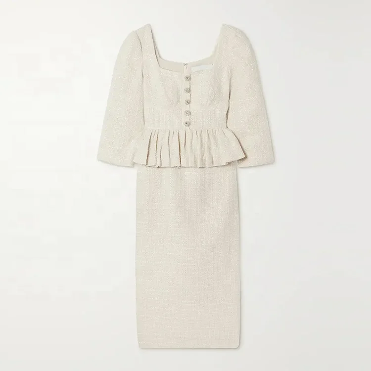 Clothing Manufacturer Custom Spring Autumn Beige square Neck Long Sleeve Elegant Casual Women Tweed Dress
