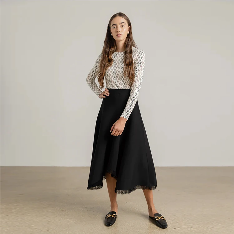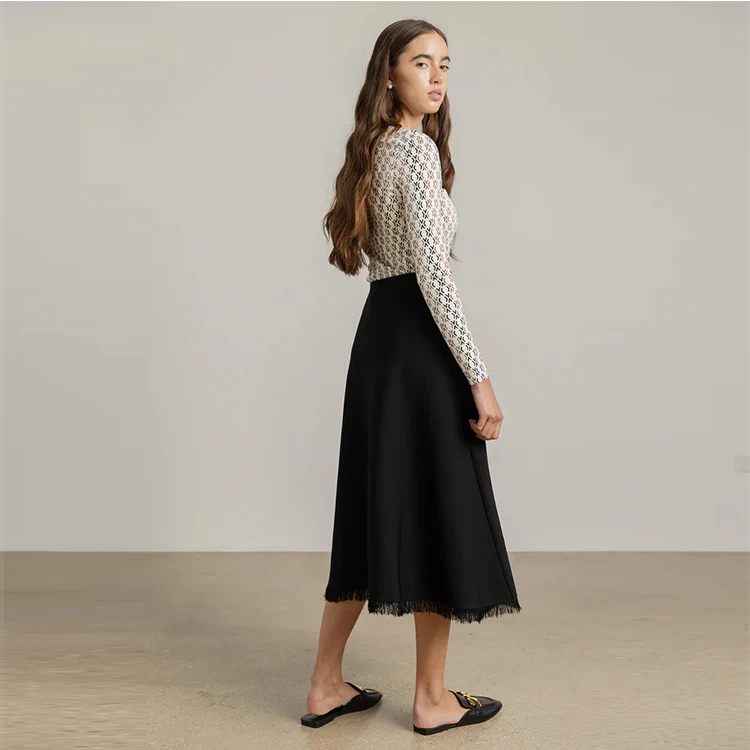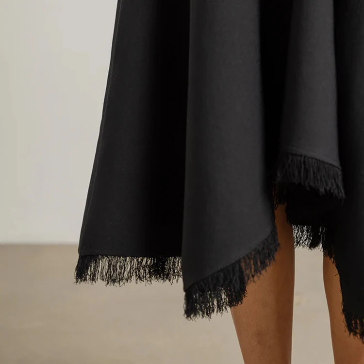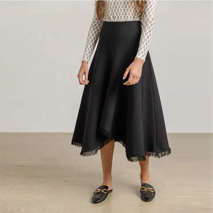 Clothing Manufacturer Custom Spring Autumn Black High Waist Stretch Elegant Casual Women Tassel Skirt