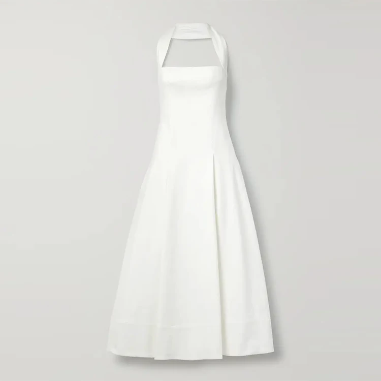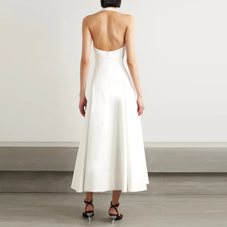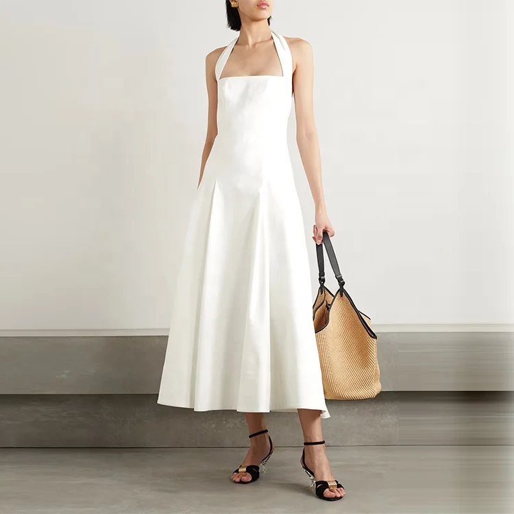Clothing Manufacturer Spring Summer White Twill Open Back Turtleneck Sleeveless Women Elegant Casual Cotton Midi Dress