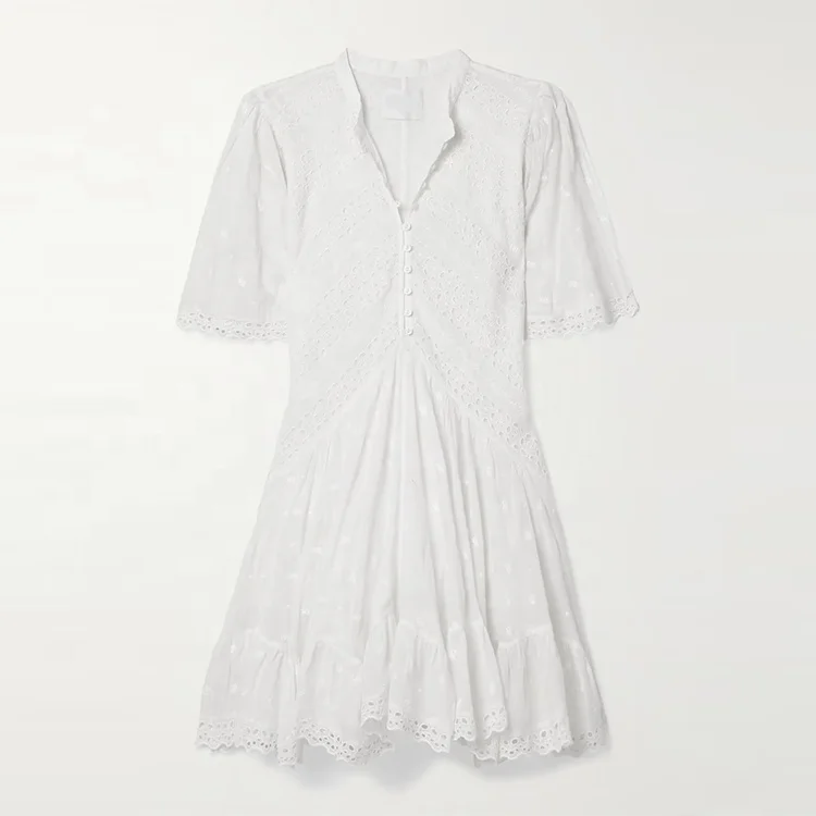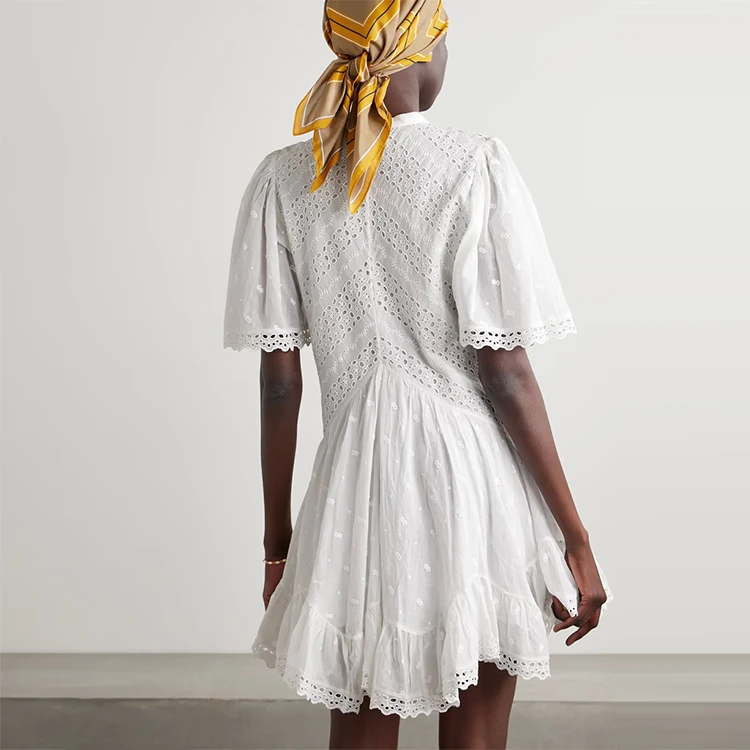 Clothing Manufacturer Custom Spring Summer White Crew Neck Short Sleeve Elegant Casual Women Cotton Dress