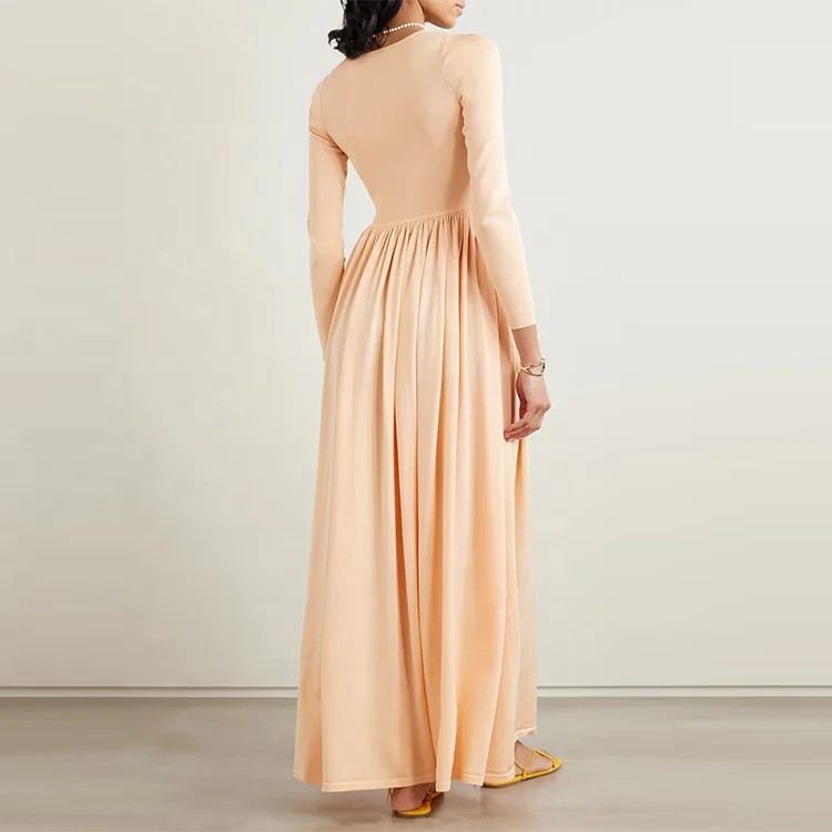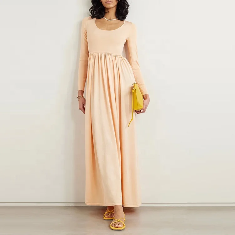 Dress Manufacturer Custom Spring Autumn Crew Neck Long Sleeve Elegant Casual Stretch Women Knit Sweater Dress
