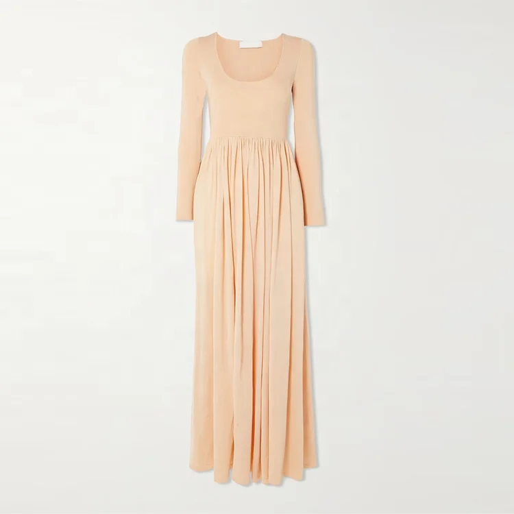 ZYHT 73849 European Wholesale Fashion Casual One Shoulder Ruched Maxi Dress Side Slit Pleated Long Sleeve Dresses for Women