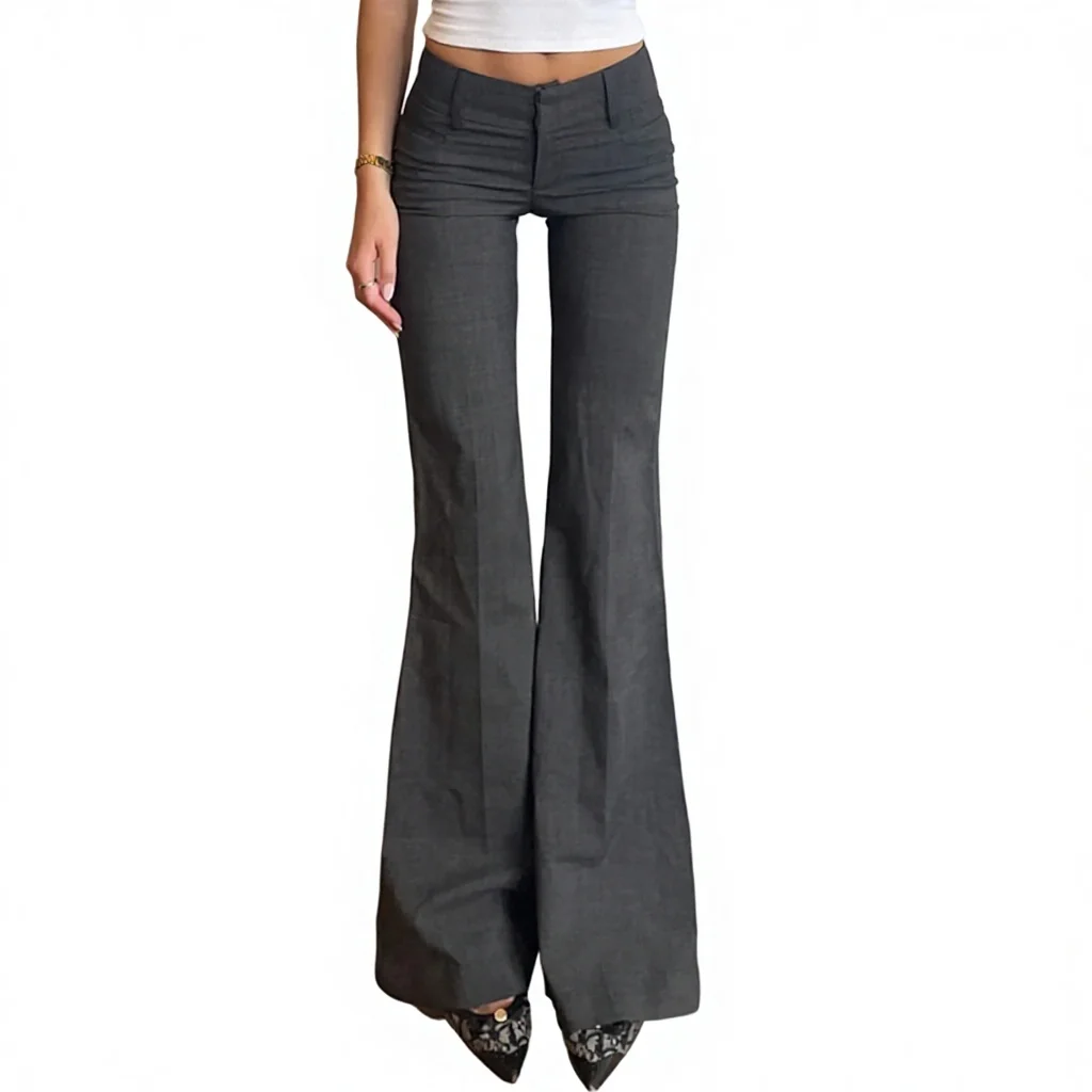 Women Low Waist Flared Knit Pants Solid Color Casual Trousers Retro Street Style Elegant Versatile Fashion