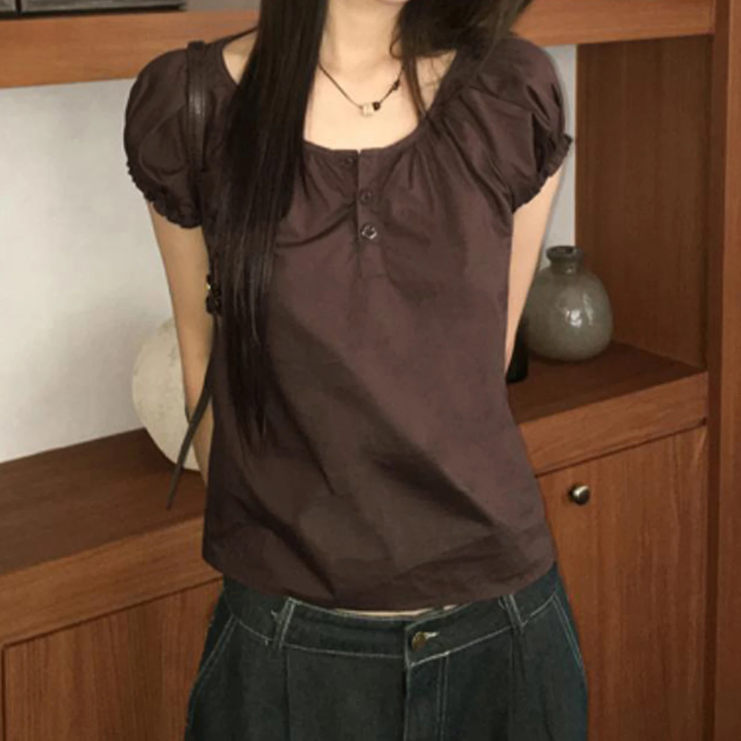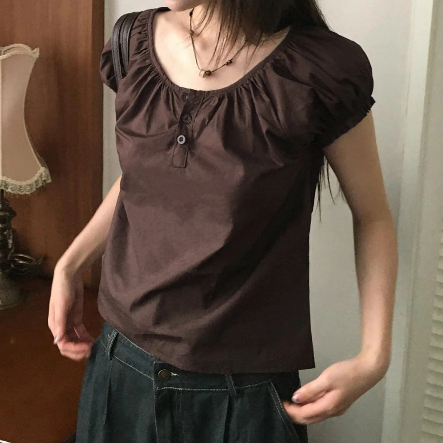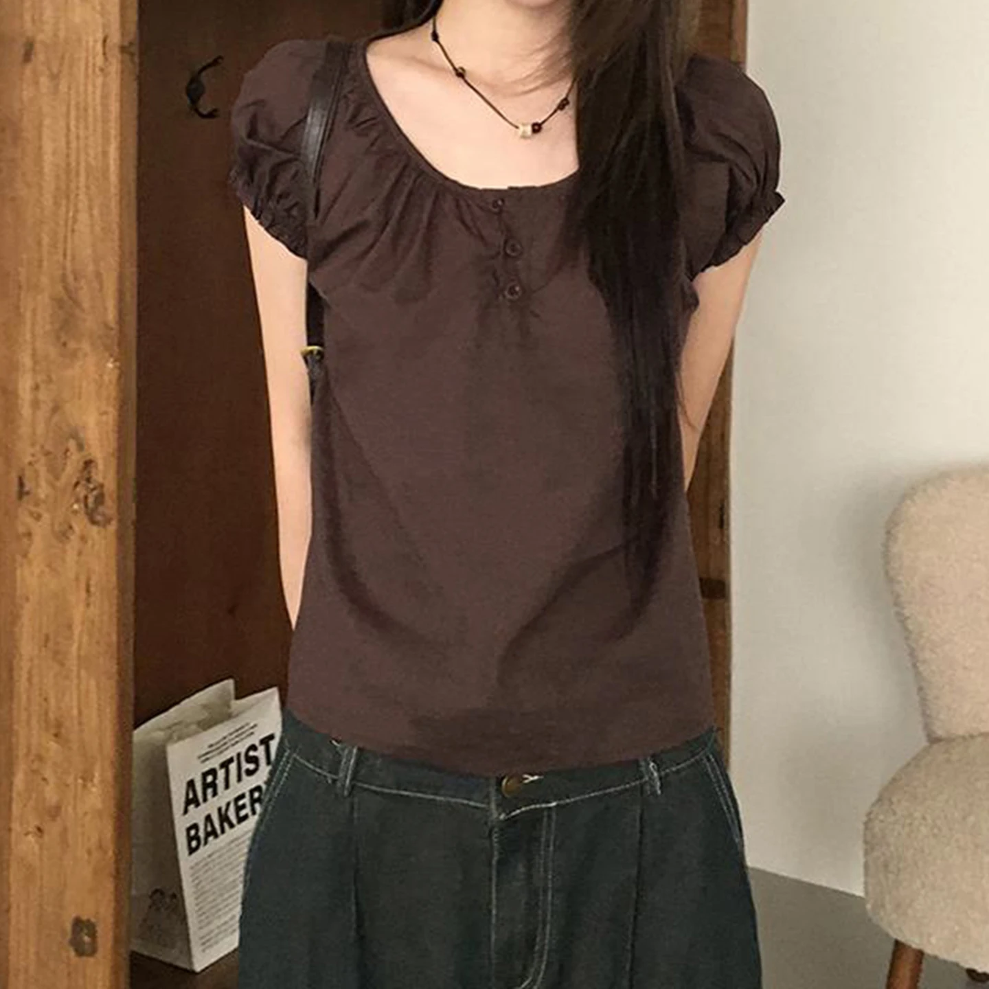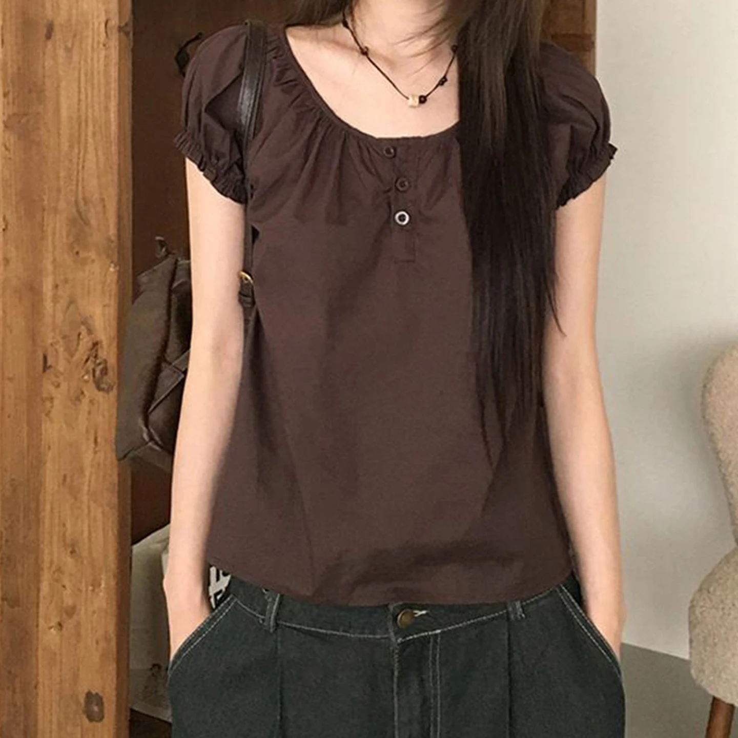 Ruffled Crew Neck Short Sleeve T-Shirt Solid Color Slim Casual Top Simple Stylish Daily Wear for Women