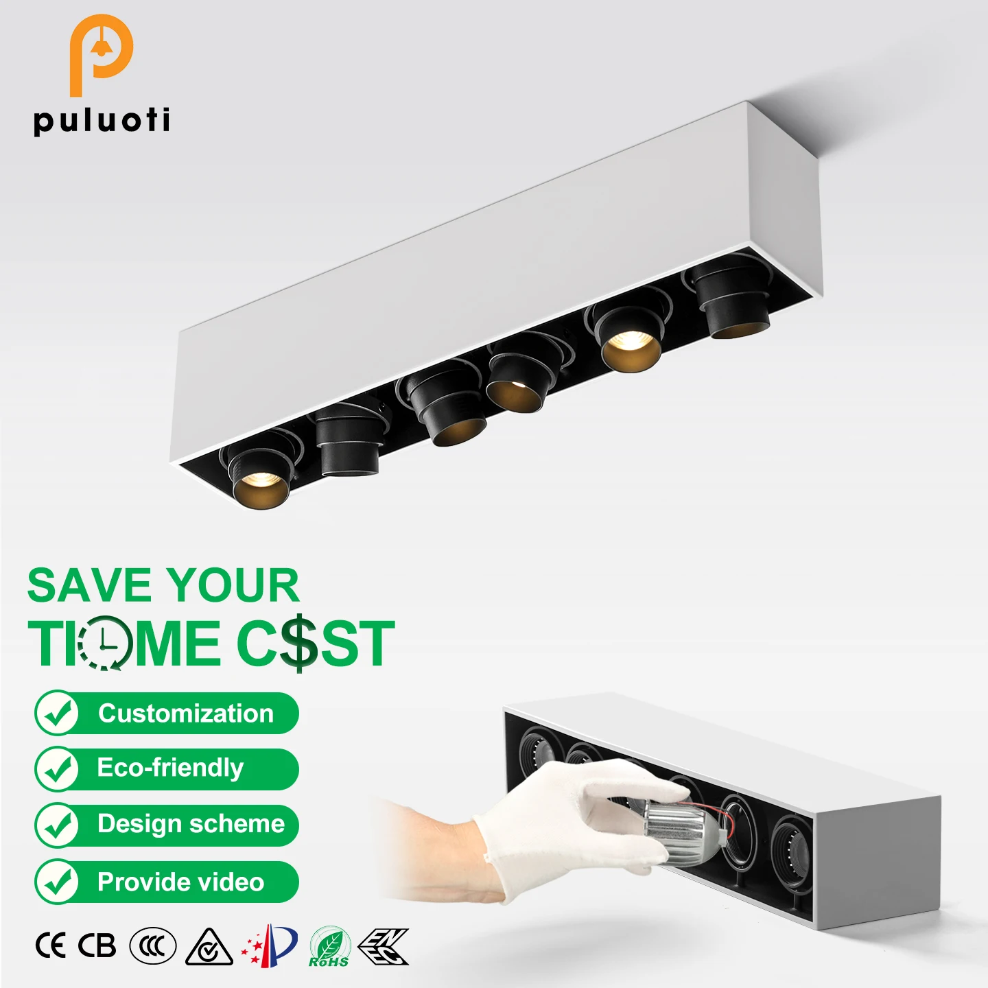 360 Degree Gyro Adjustable Cob LED Spotlight Modern Aluminum Square Surface Mounted Ceiling Dimmable Surface Mounted Down Light