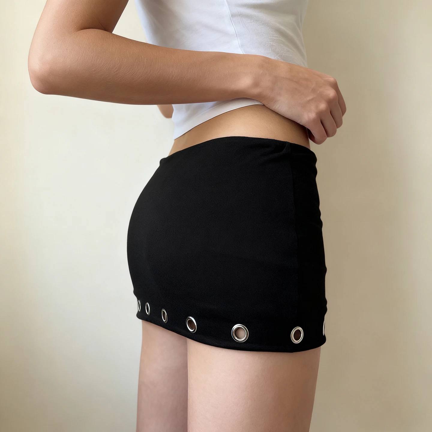 Metal Grommet low-rise hip wrap mini skirt basic casual sexy short skirt