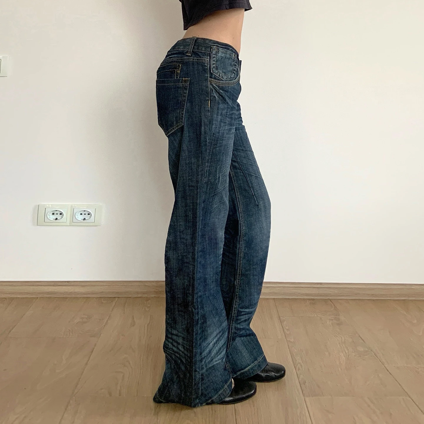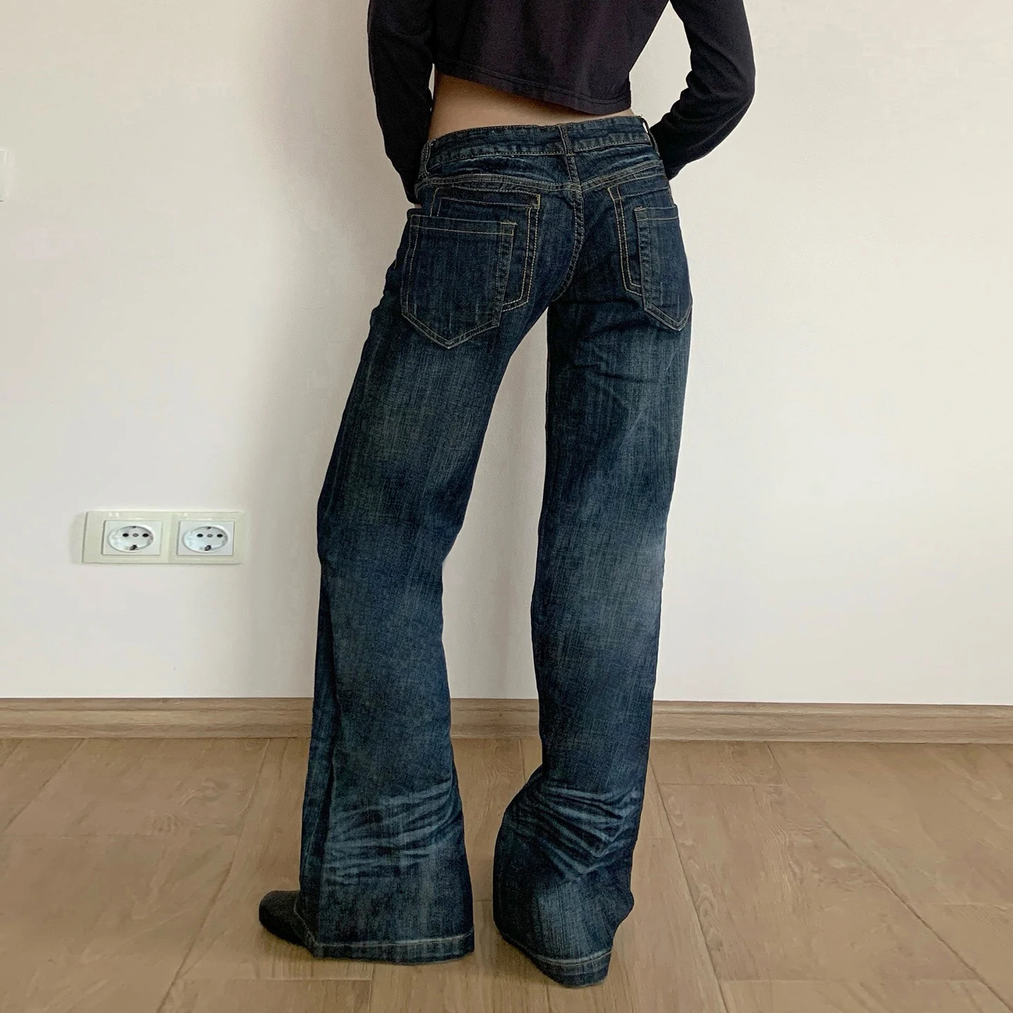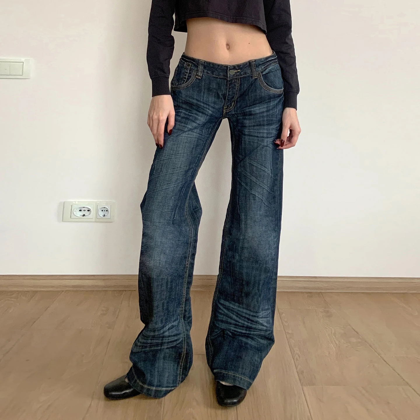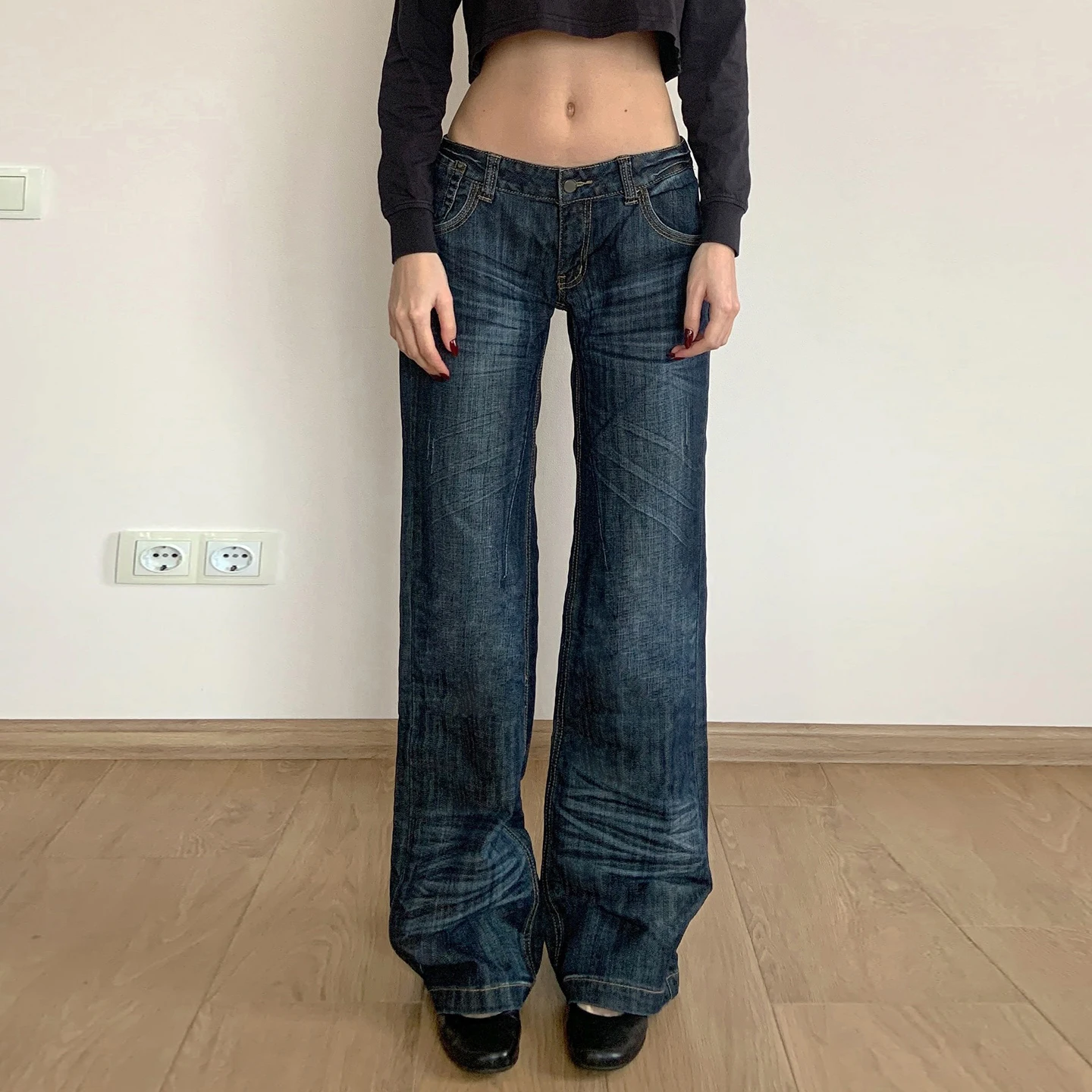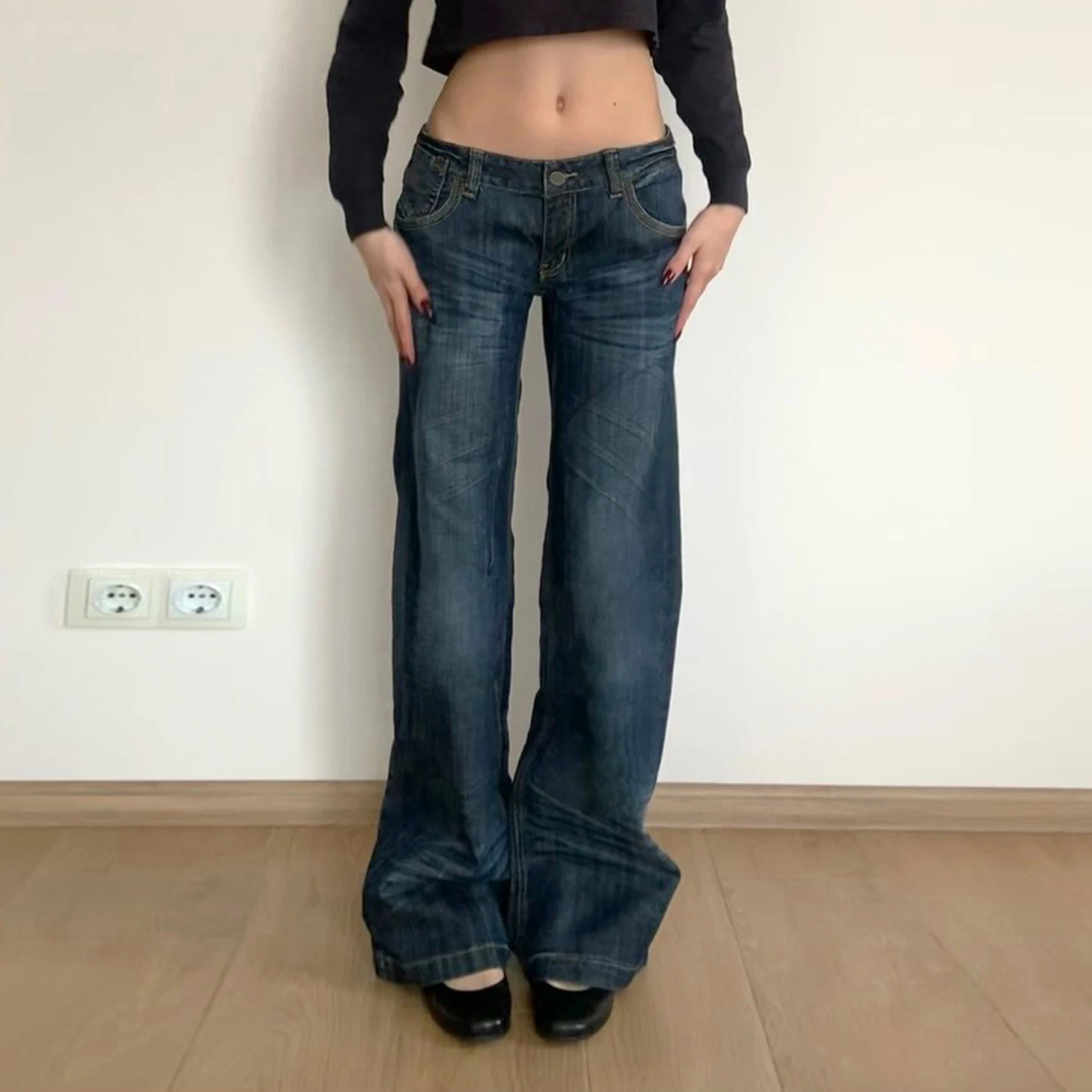 Pleated Washed Distressed Straight-Leg Jeans for Women Mid-Rise Casual Street Style Retro Fashion Versatile Denim Pants