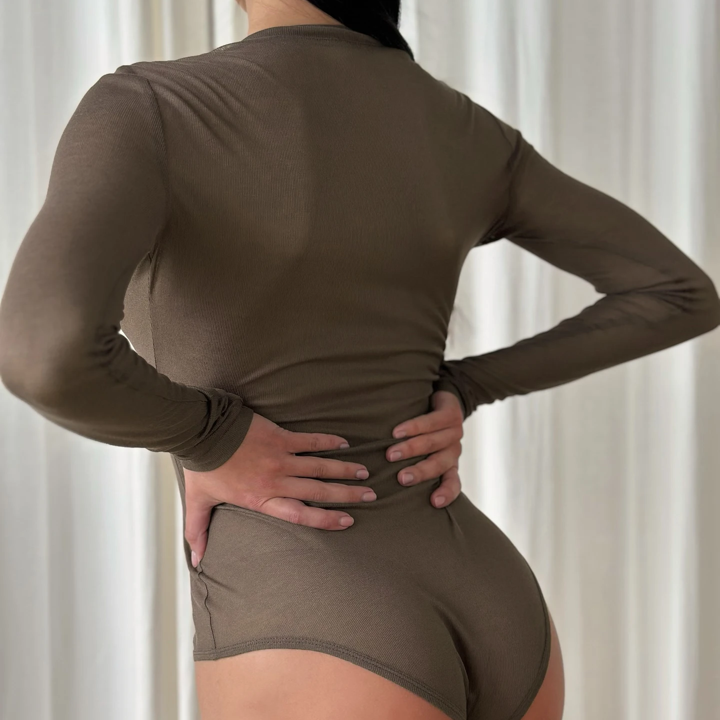 Button-decorated V-neck thin, skin-friendly, highly elastic top plain color simple casual bodysuit