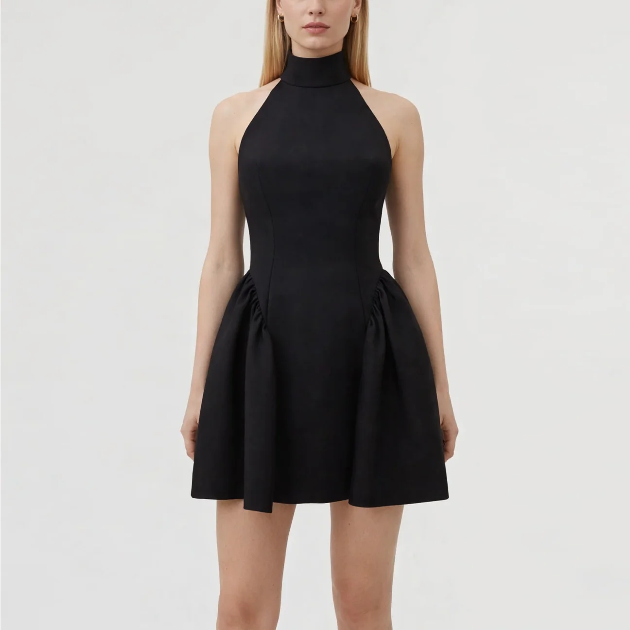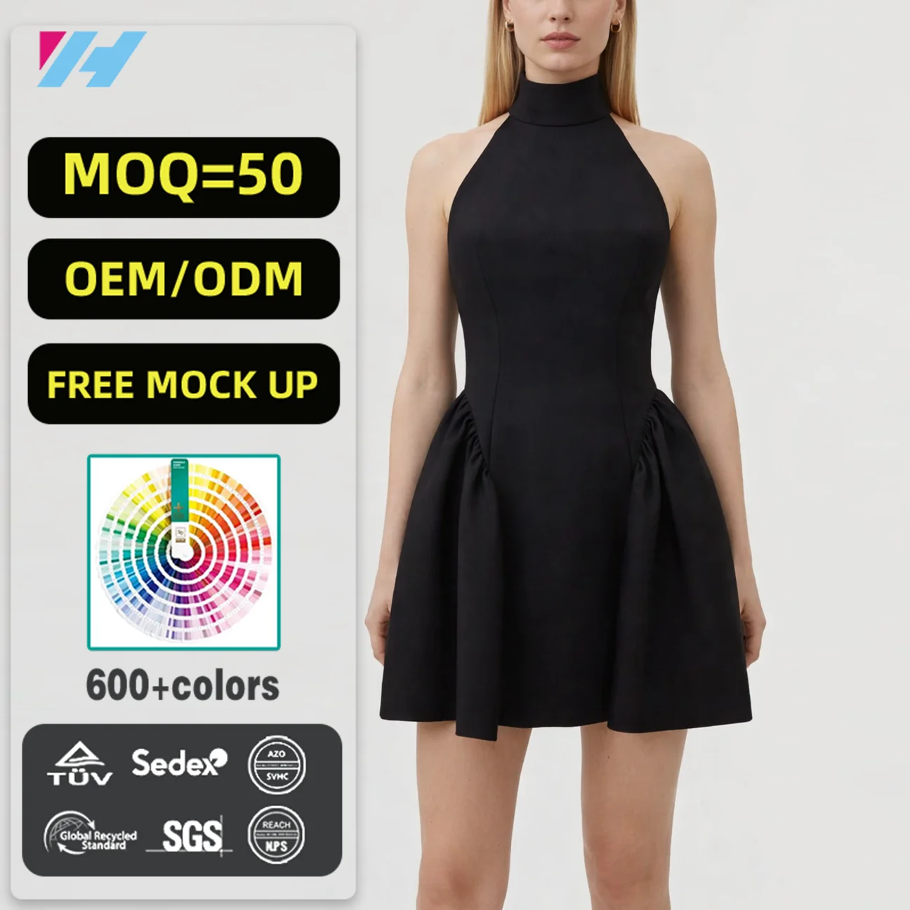 Custom Wholesale Sexy Fashion Halter A-line Pleated Women Ladies Mini Dress