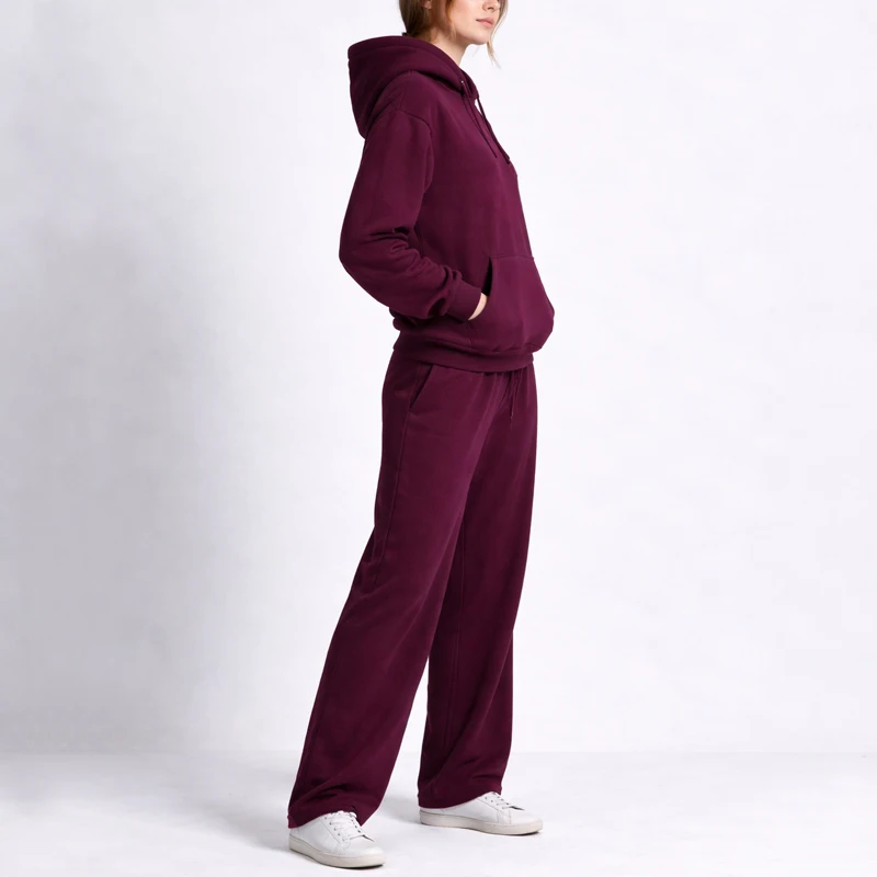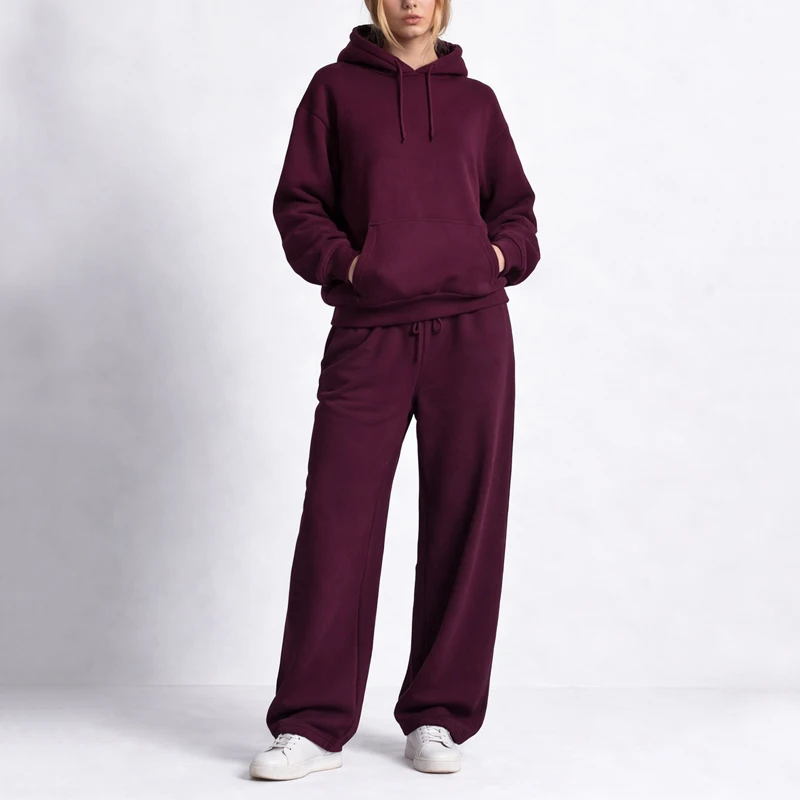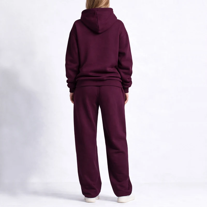 New Designs Manufacturer OEM Customs Solid Sweatshirt Relax Jogger Cotton Sweatpants and Hoodie Set for Women