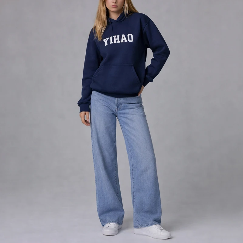 High Quality OEM logo Custom Casual Sweatshirt Pocket Cotton Embroidered Hoodie for Women