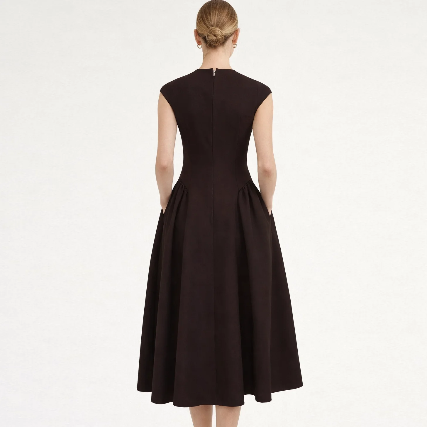 Custom Wholesale Casual Summer Elegant Ladies A-line Pleated Empire Midi Long Women Dress