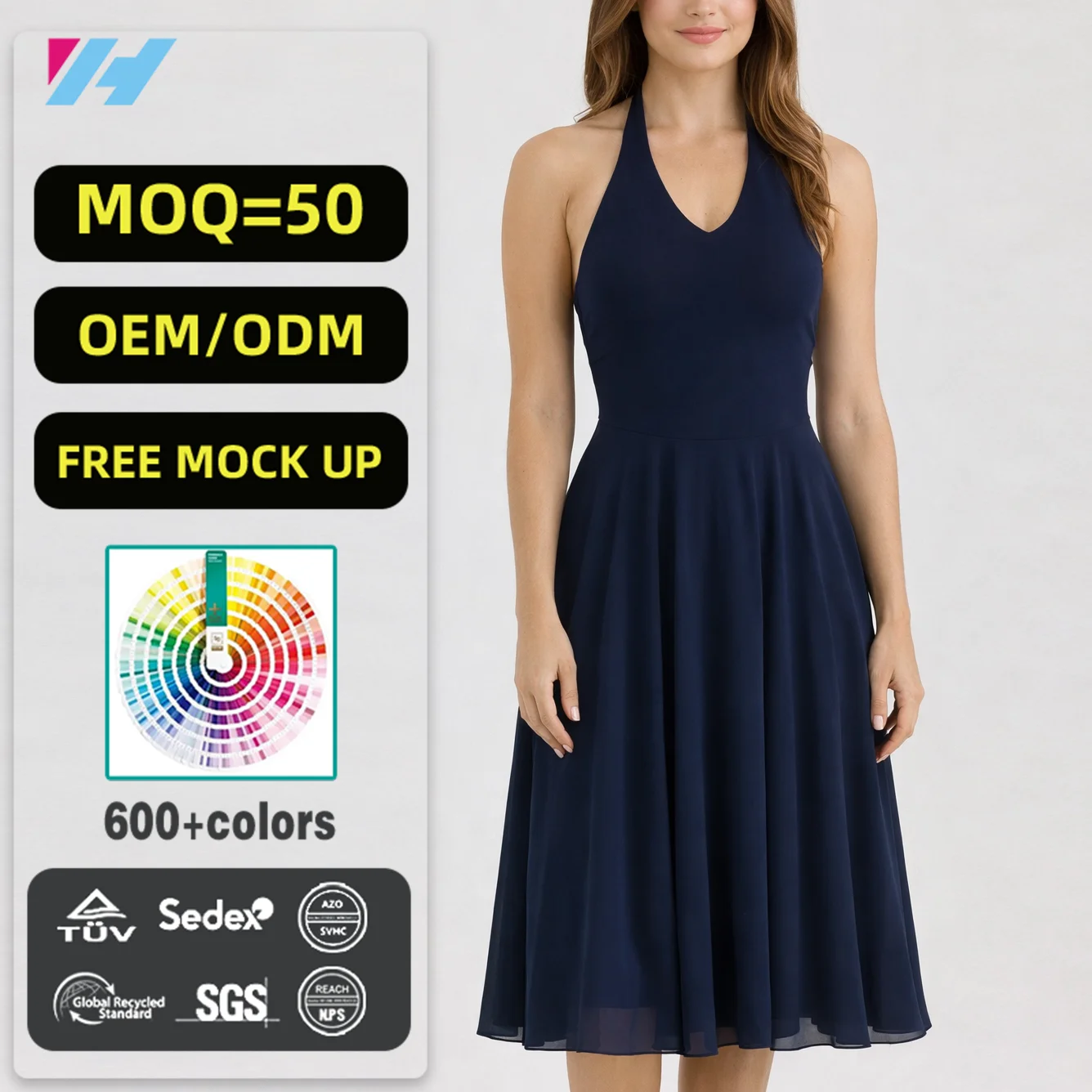 Custom Wholesale Sexy Elegant Halter Backless Pleated Woven Breathable Casual Chiffon Midi Long Women Dress