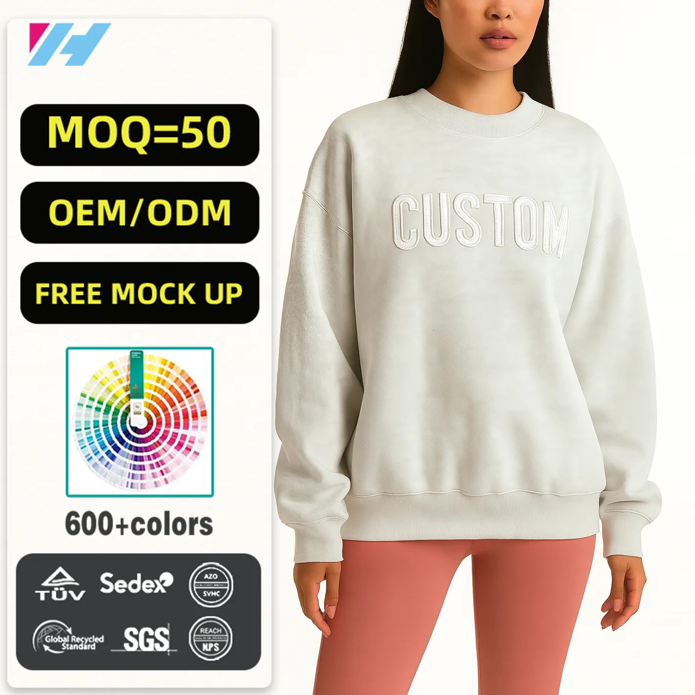 Custom Manufacturing Wholesale High Quality Cotton Women Crewneck 3d Embroidery Embroidered Hoodies
