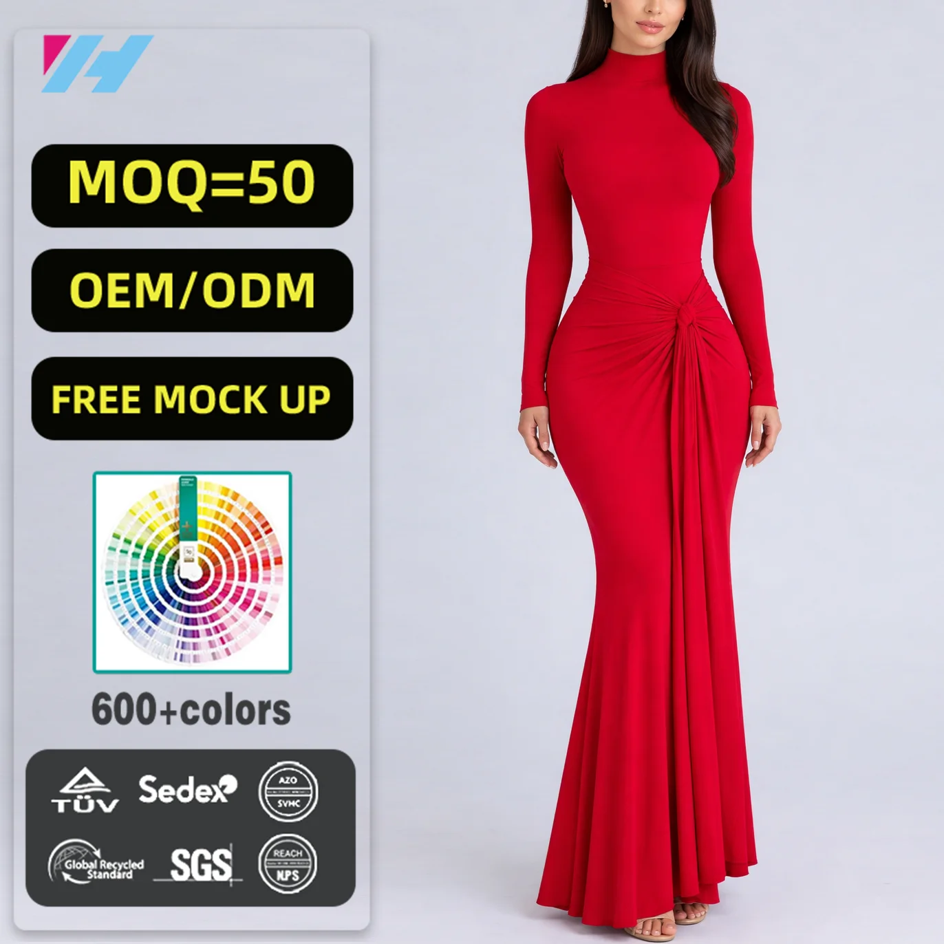 ZYHT 73902 Dark Green Blue Long Sleeve Simple Elegant Evening Dress Customize High End Women Clothing Manufacturer