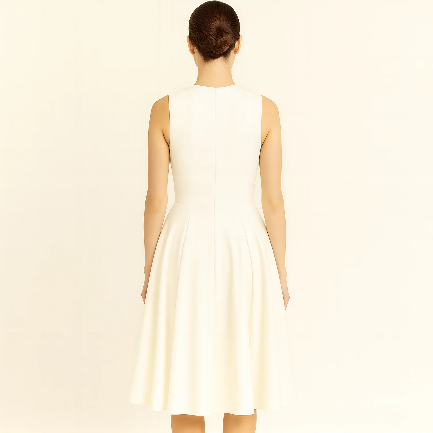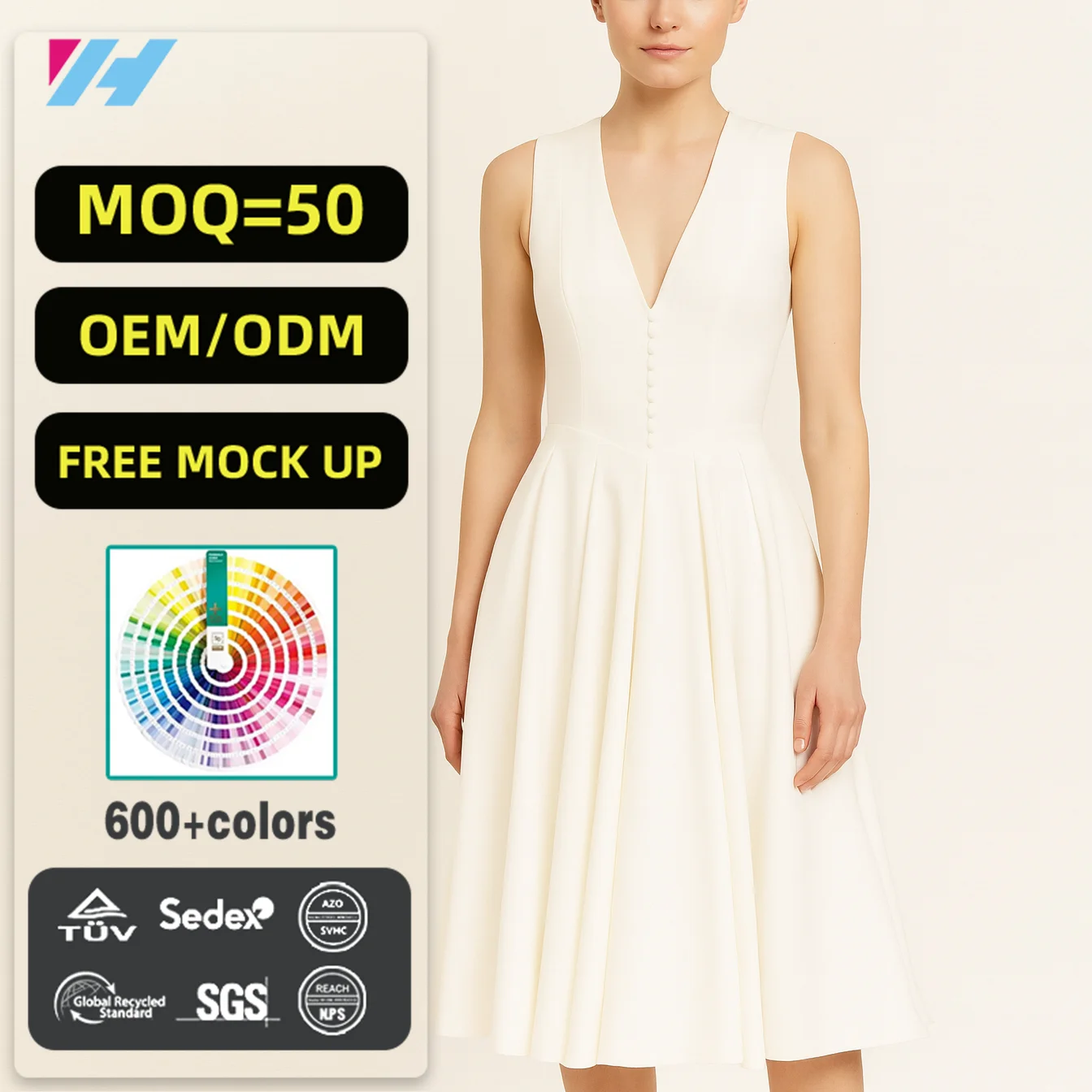 Custom Wholesale Hot Sale Fashion Ladies Women White Sleeveless V-neck White A-line Pleated Midi Long Dress