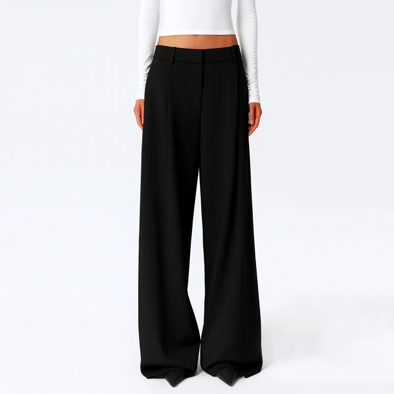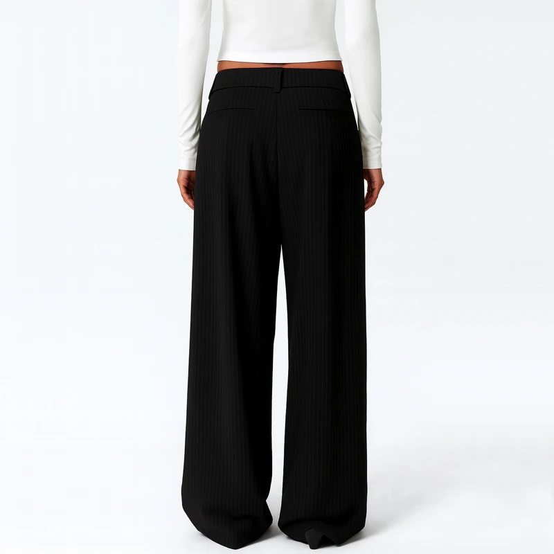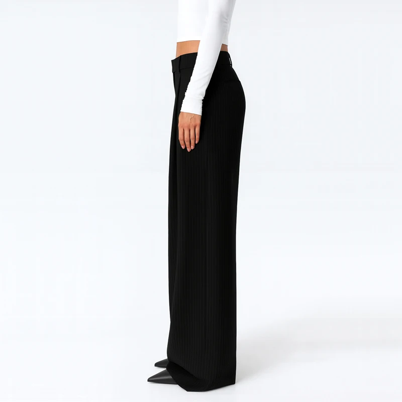 Wholesaler OEM Customs Stripe Women Wide Leg Pants Good Quality Vintage Low Waist Trousers for Ladies
