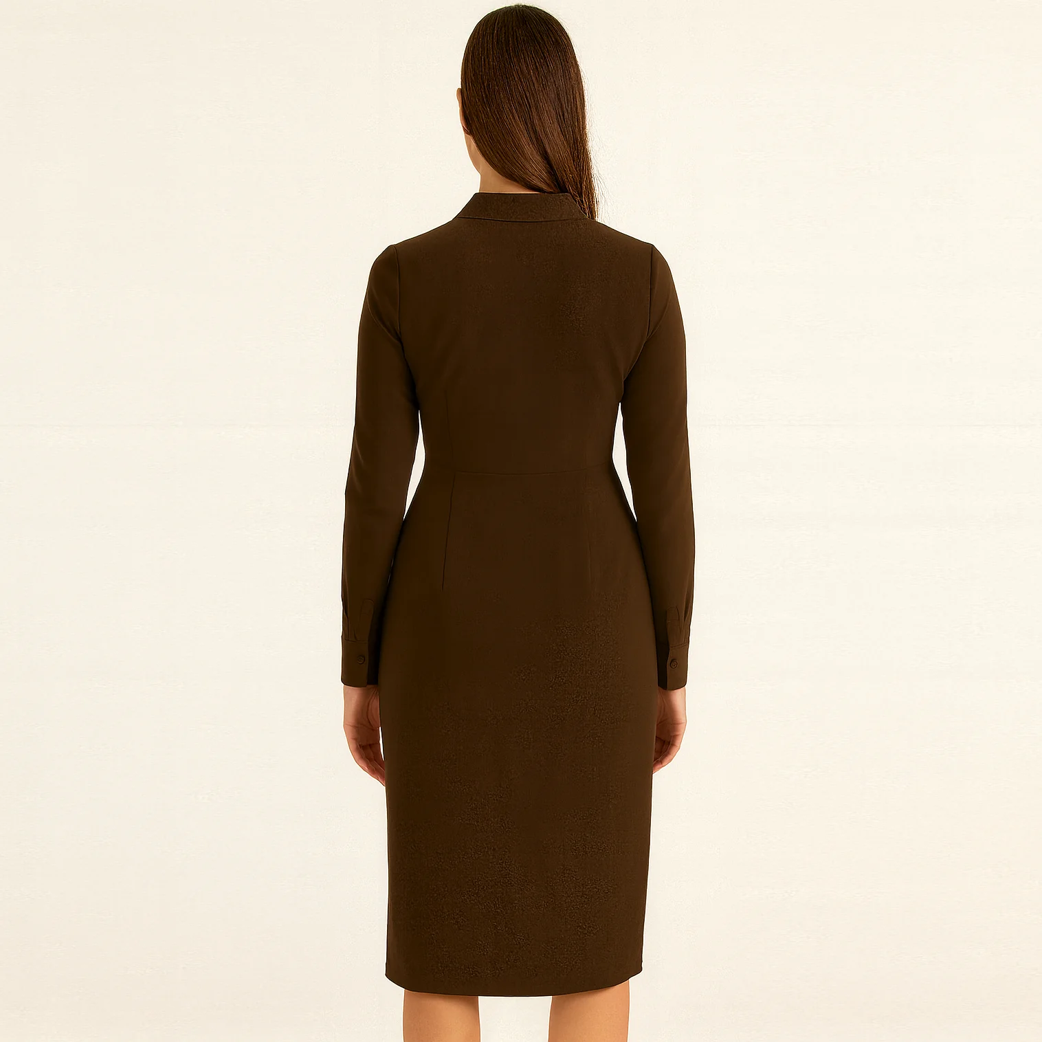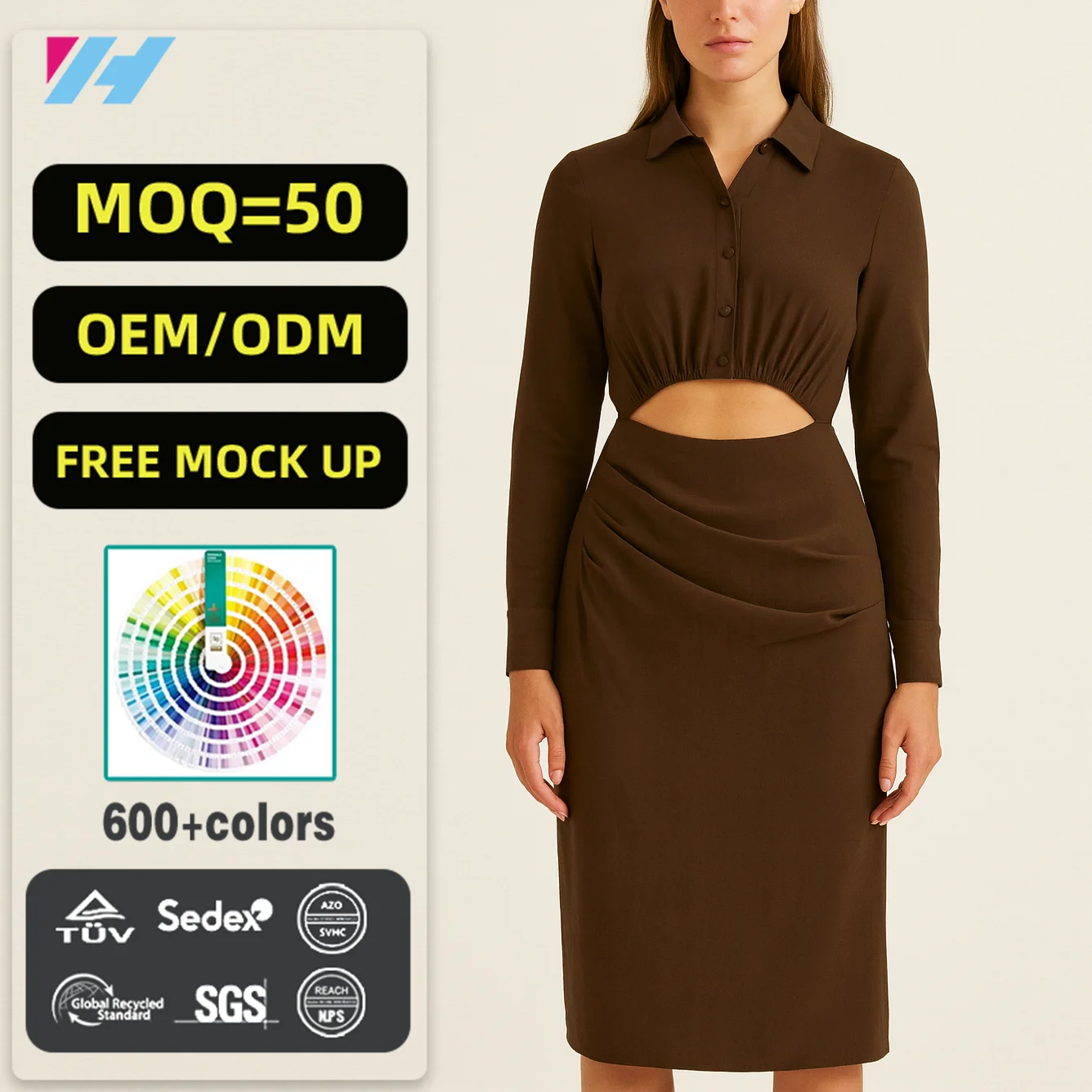 Custom Wholesale Hot Sale Elegant Long Sleeve Women Ladies Cut Out Midi Long Shirt Dress