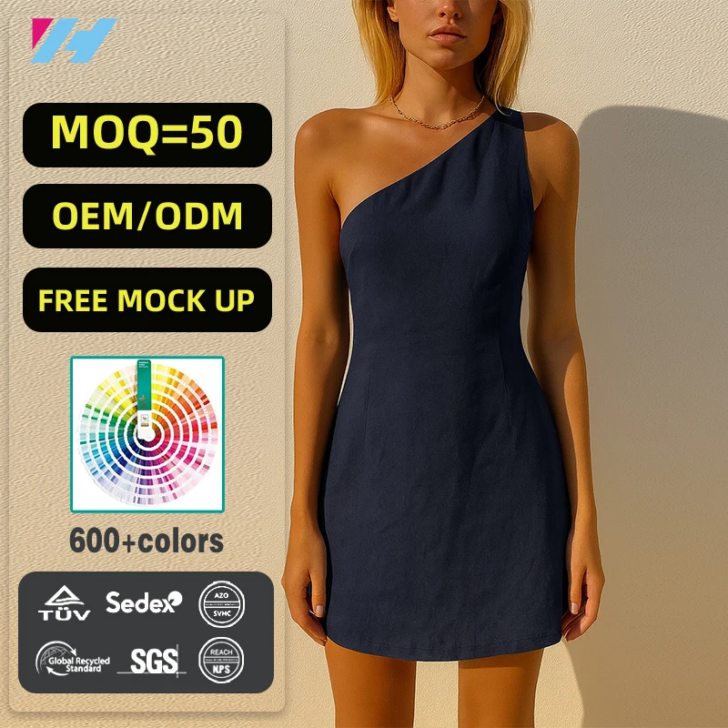 Custom Wholesale High Quality Summer One the Shoulder A-line Mini Women Dress